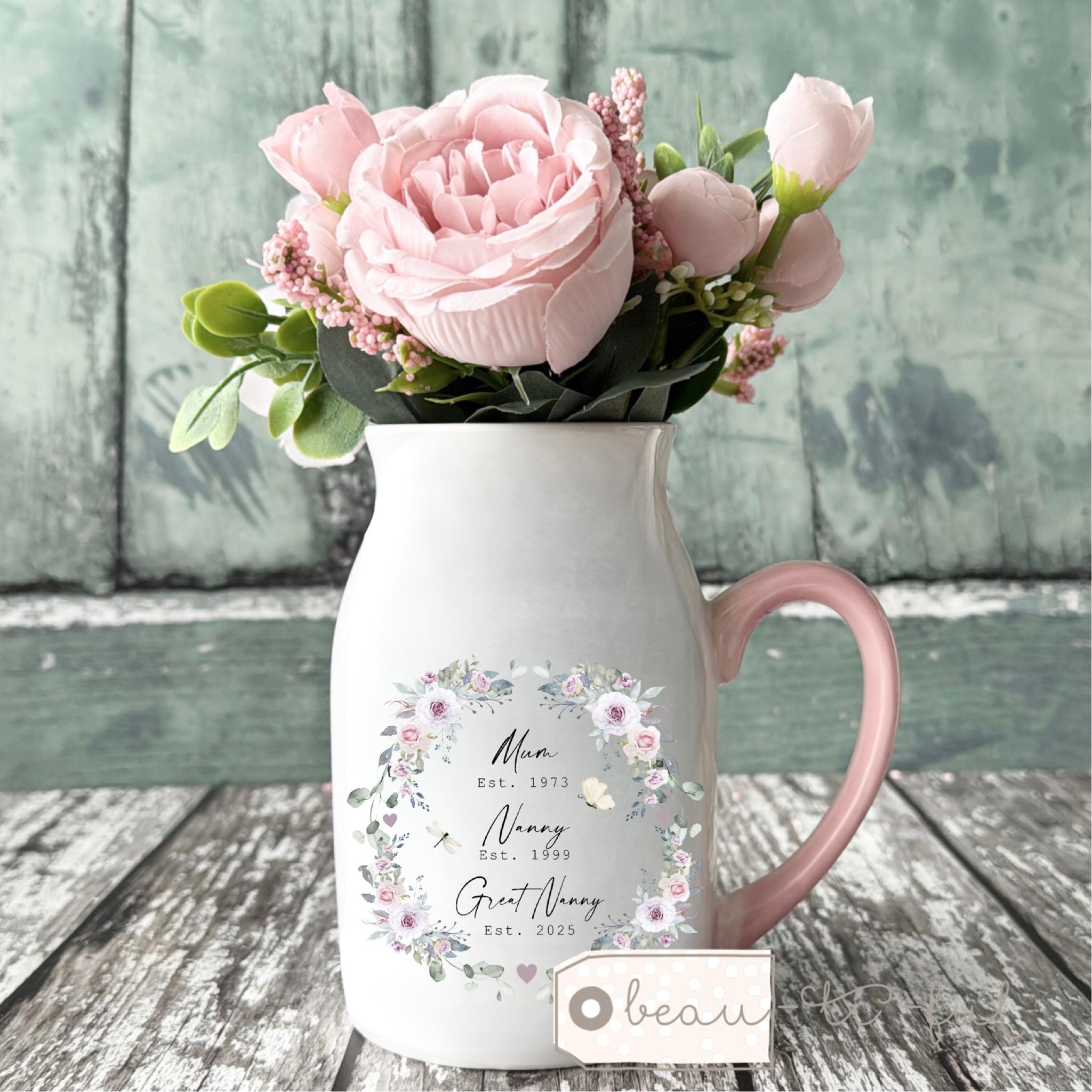 Pink handle jug/mug/vase 450ml size 12.5cm high x 8cm wide