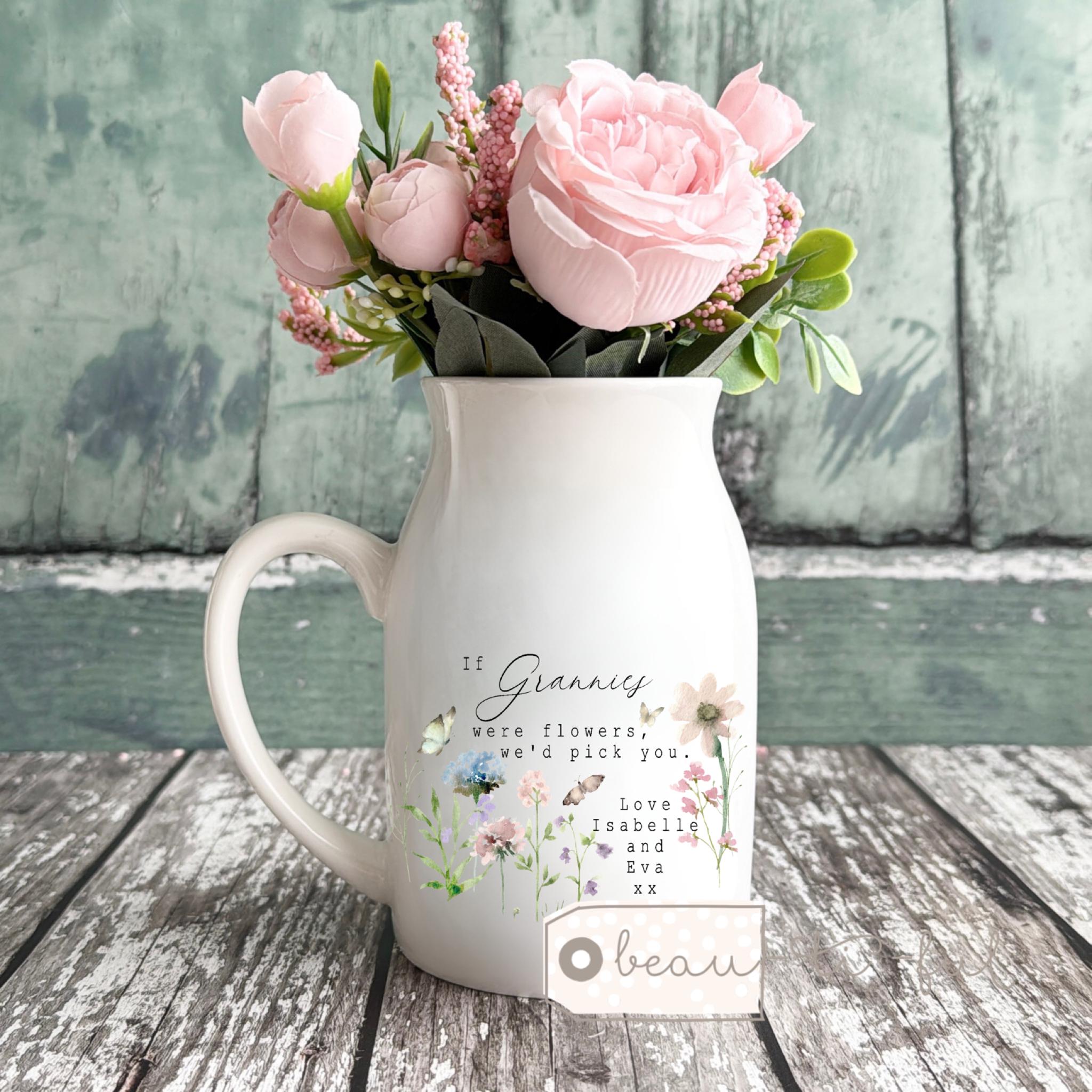 Floral design item that can be used as a small jug, vase or mug.