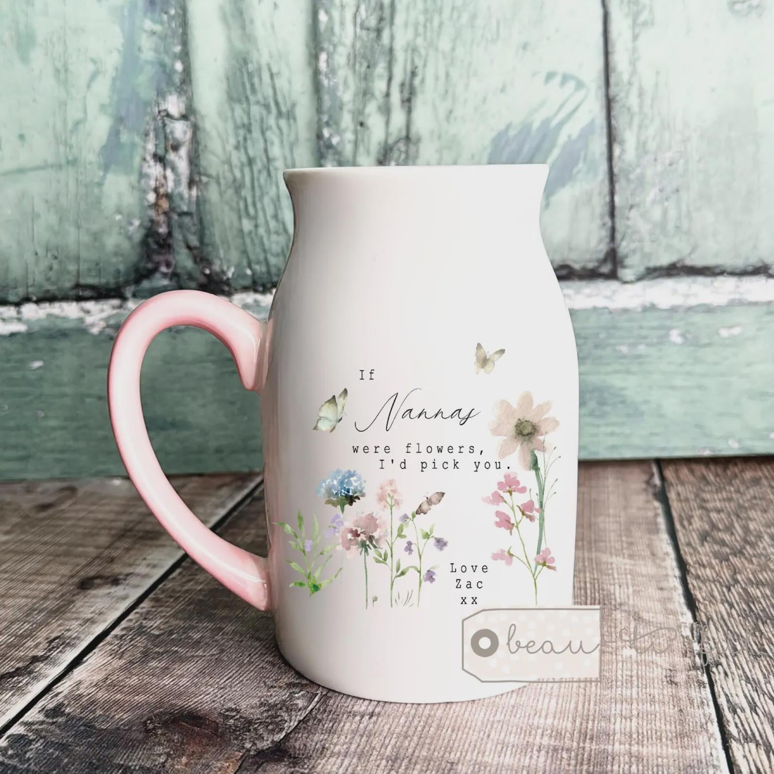 Pink handle 450ml mug/jug/vase size 12.5 cm high x 8cm wide
