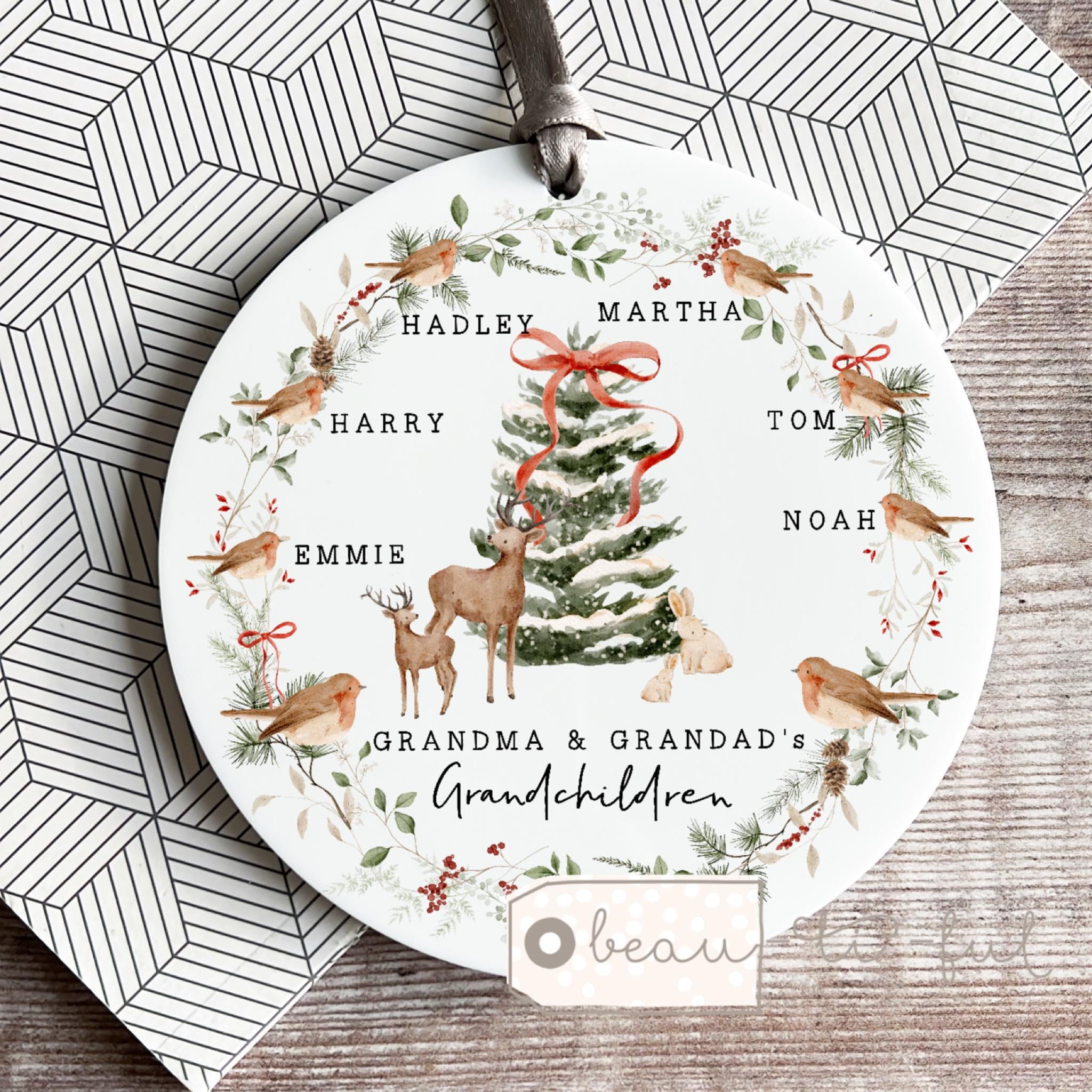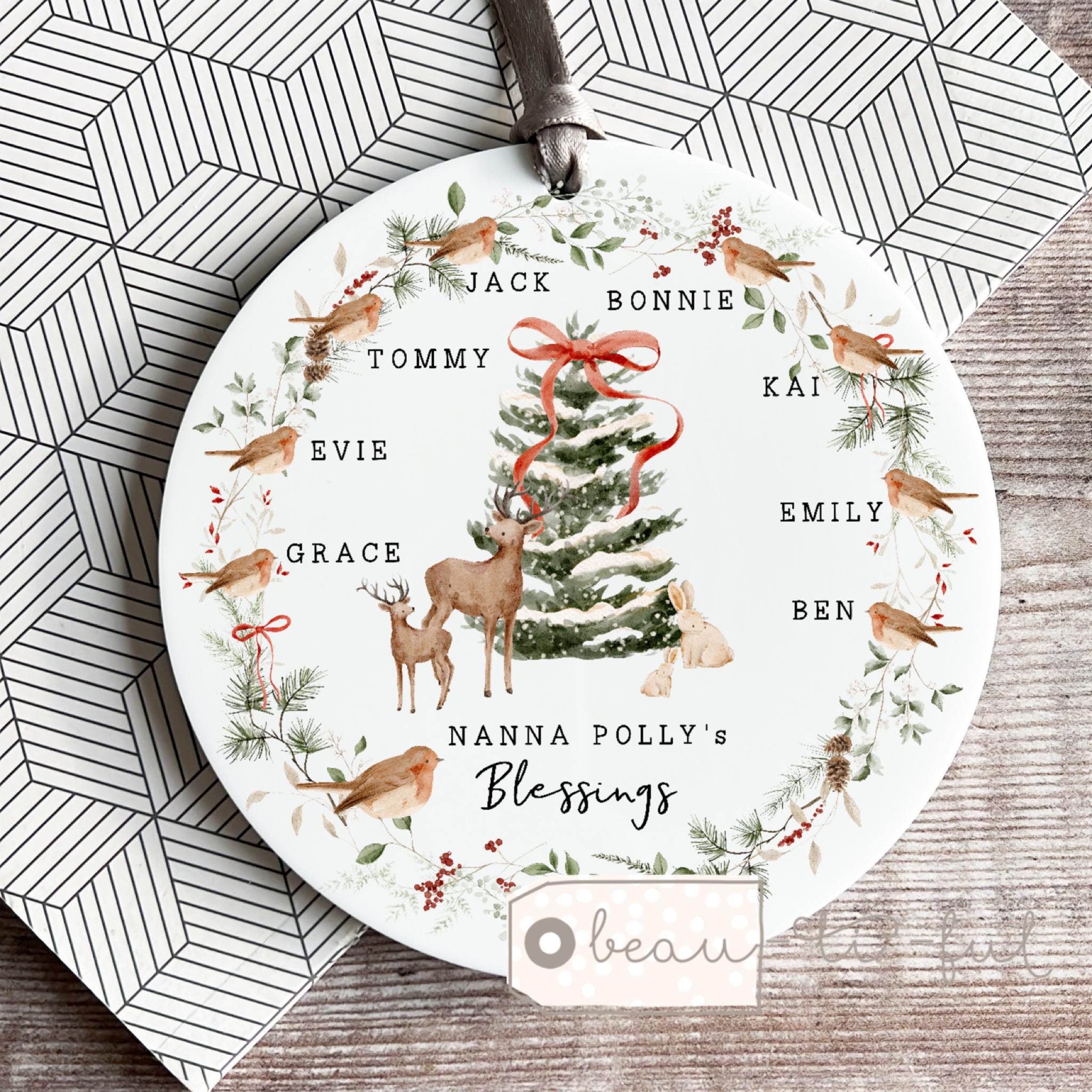 A lovely acrylic or ceramic keepsake ornament. Hung with Ribbon. Ribbon may vary.