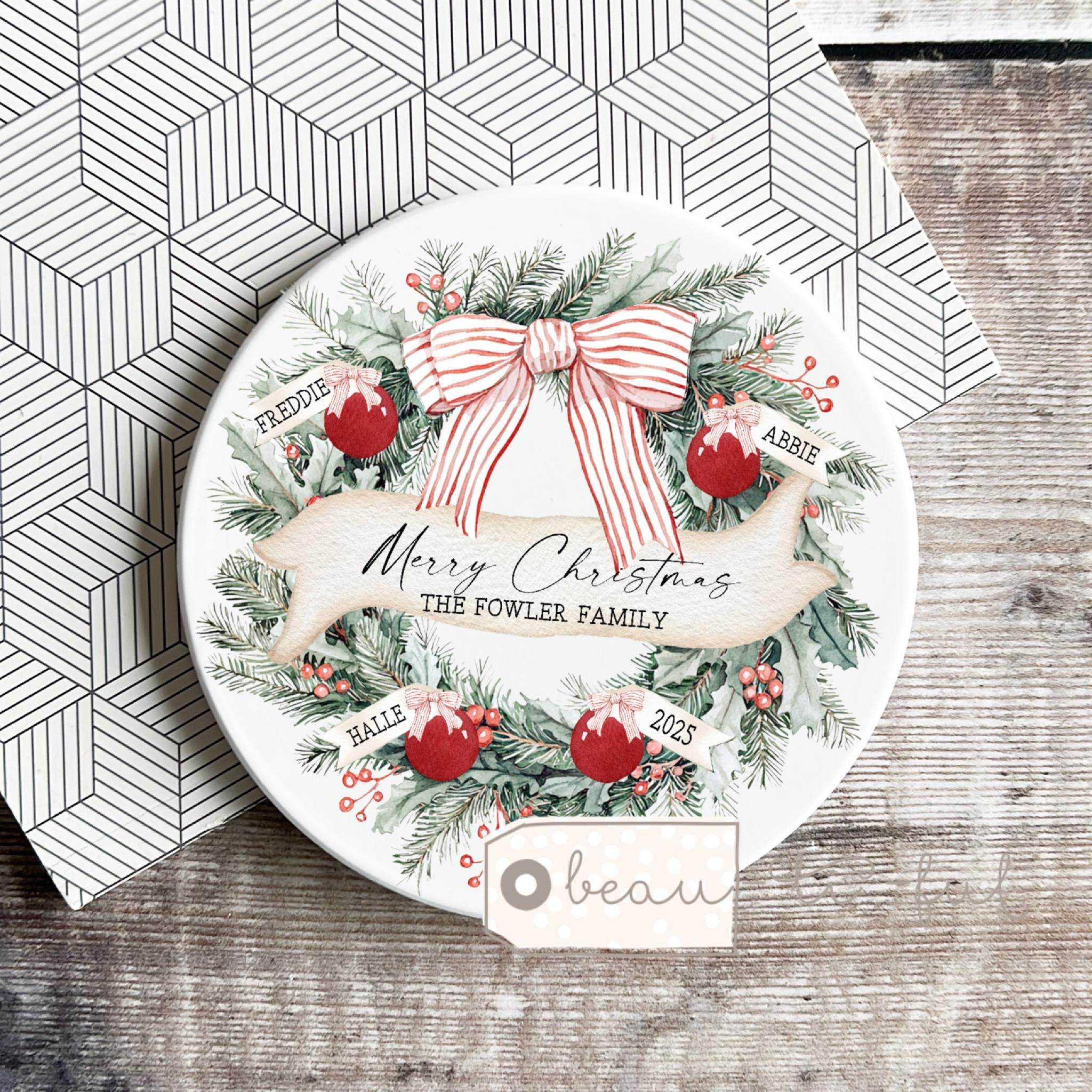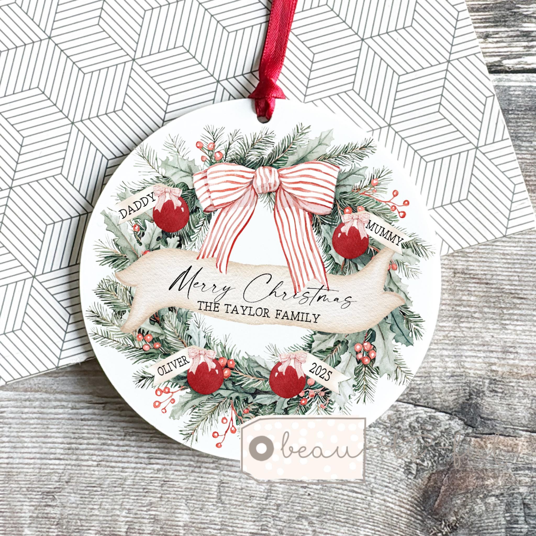 A lovely acrylic or ceramic keepsake ornament. Hung with Ribbon. Ribbon may vary.