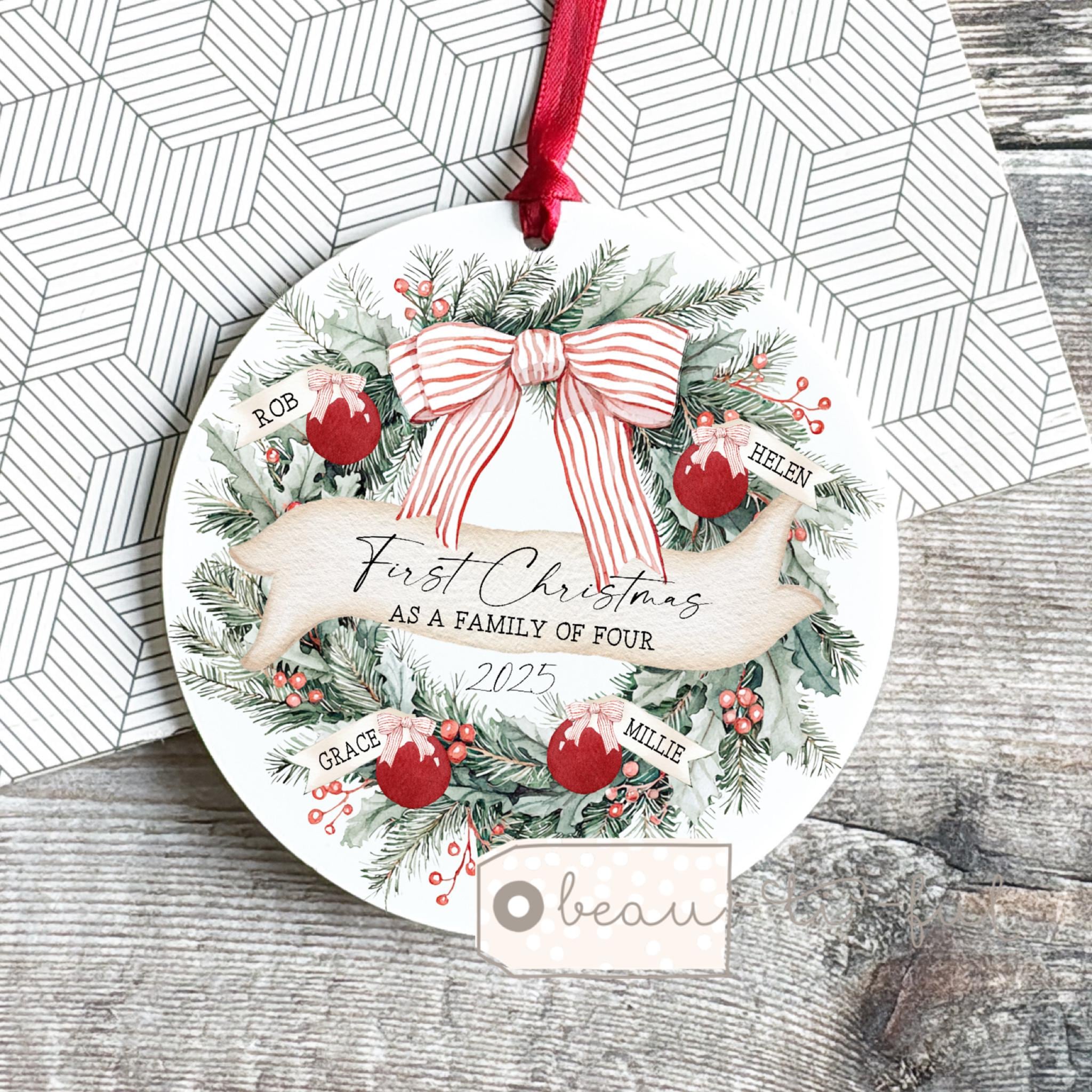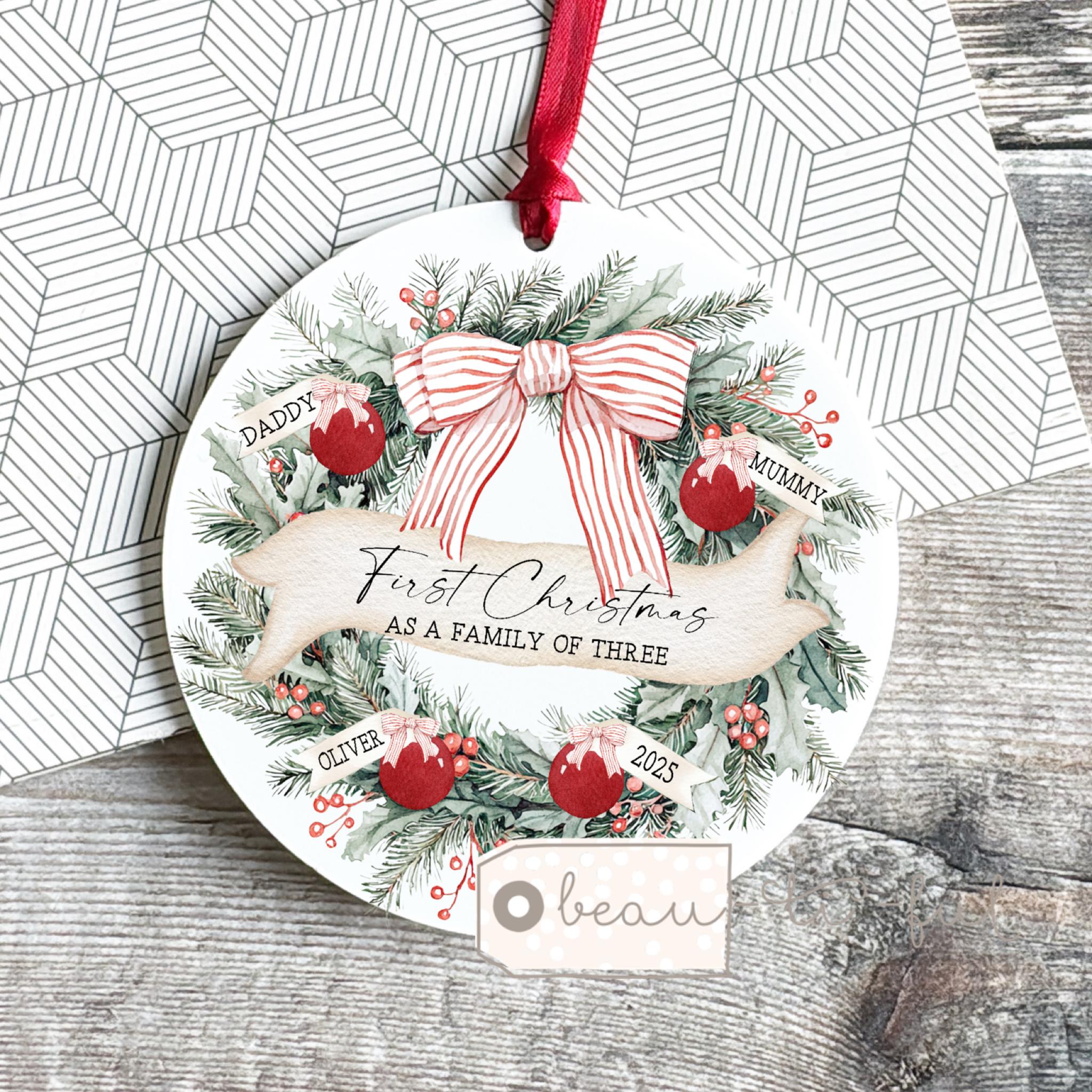 A lovely acrylic or ceramic keepsake ornament. Hung with Ribbon. Ribbon may vary.