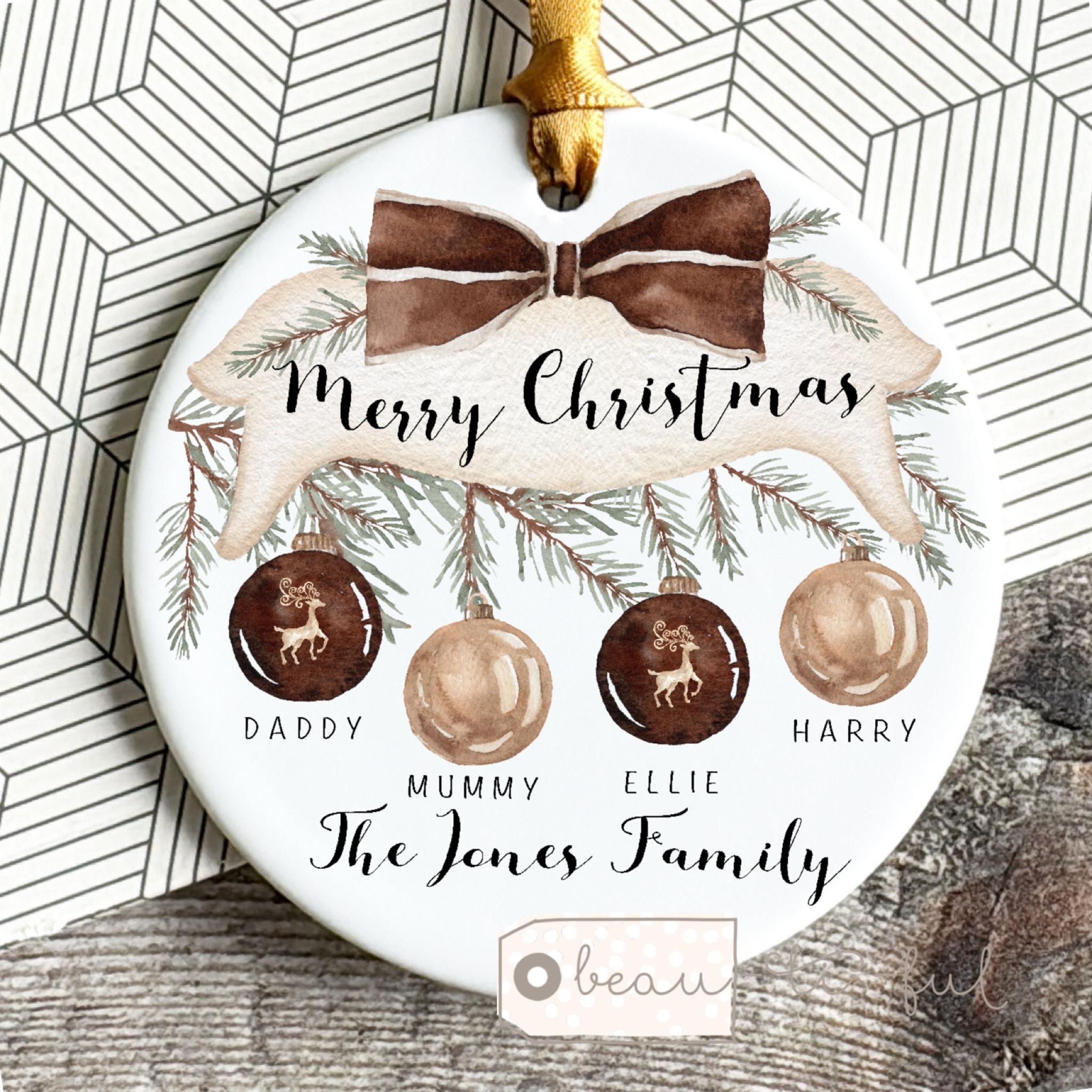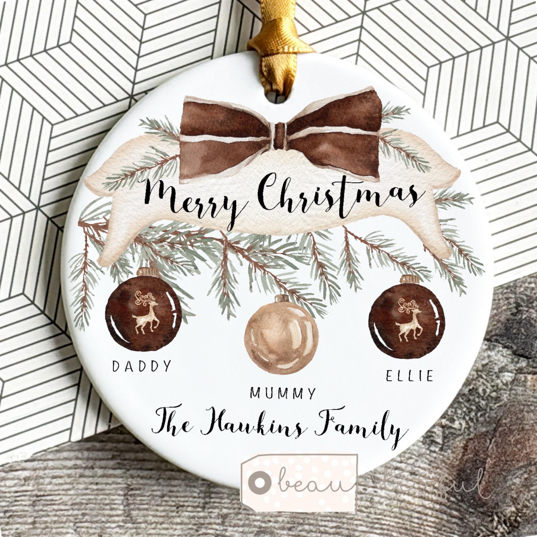 A lovely acrylic or ceramic keepsake ornament. Hung with Ribbon. Ribbon may vary.