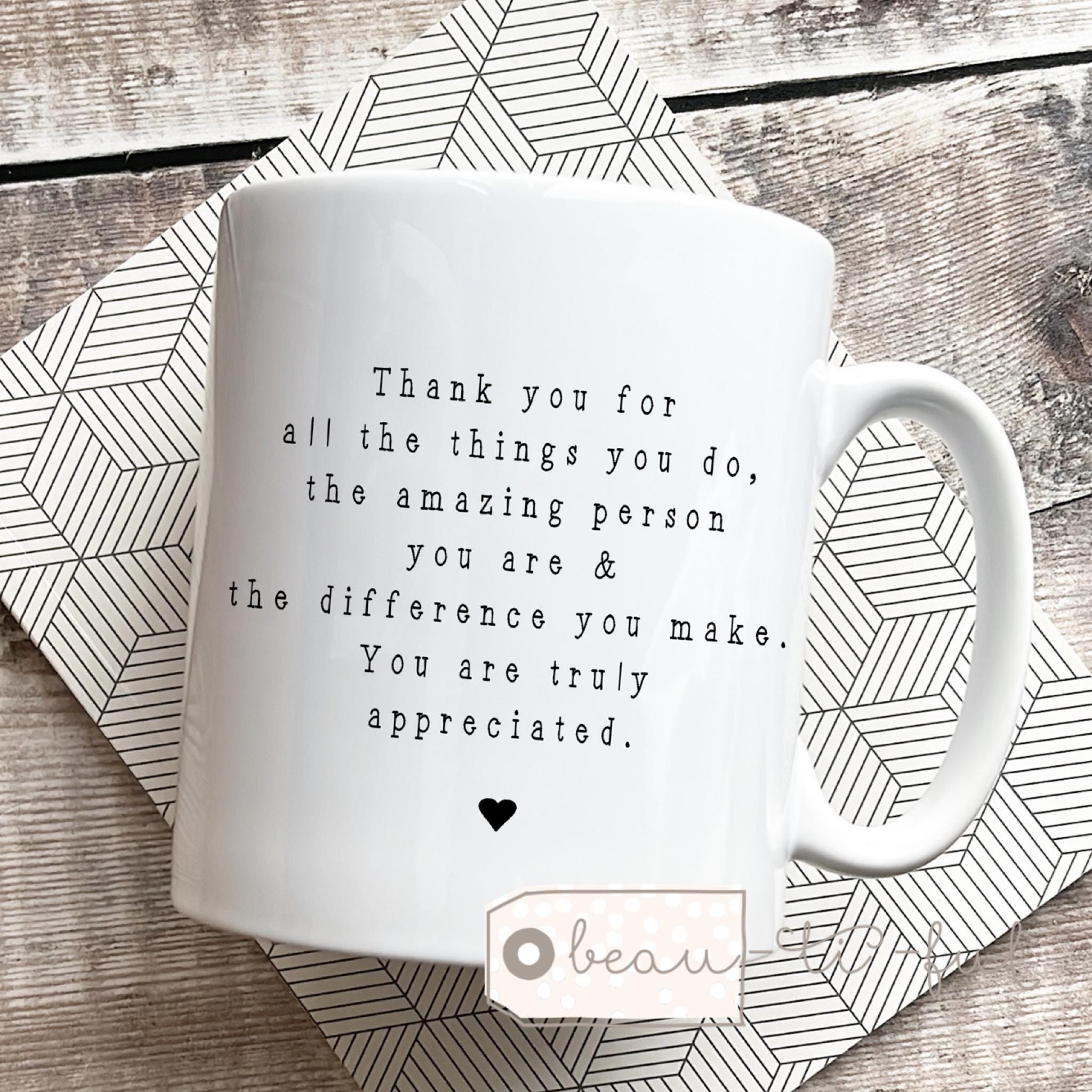 Personalised Thank you mug… quote gift Mug - You are truly appreciated Gift mug - Tea mug- Coffee mug- Friendship mug -
