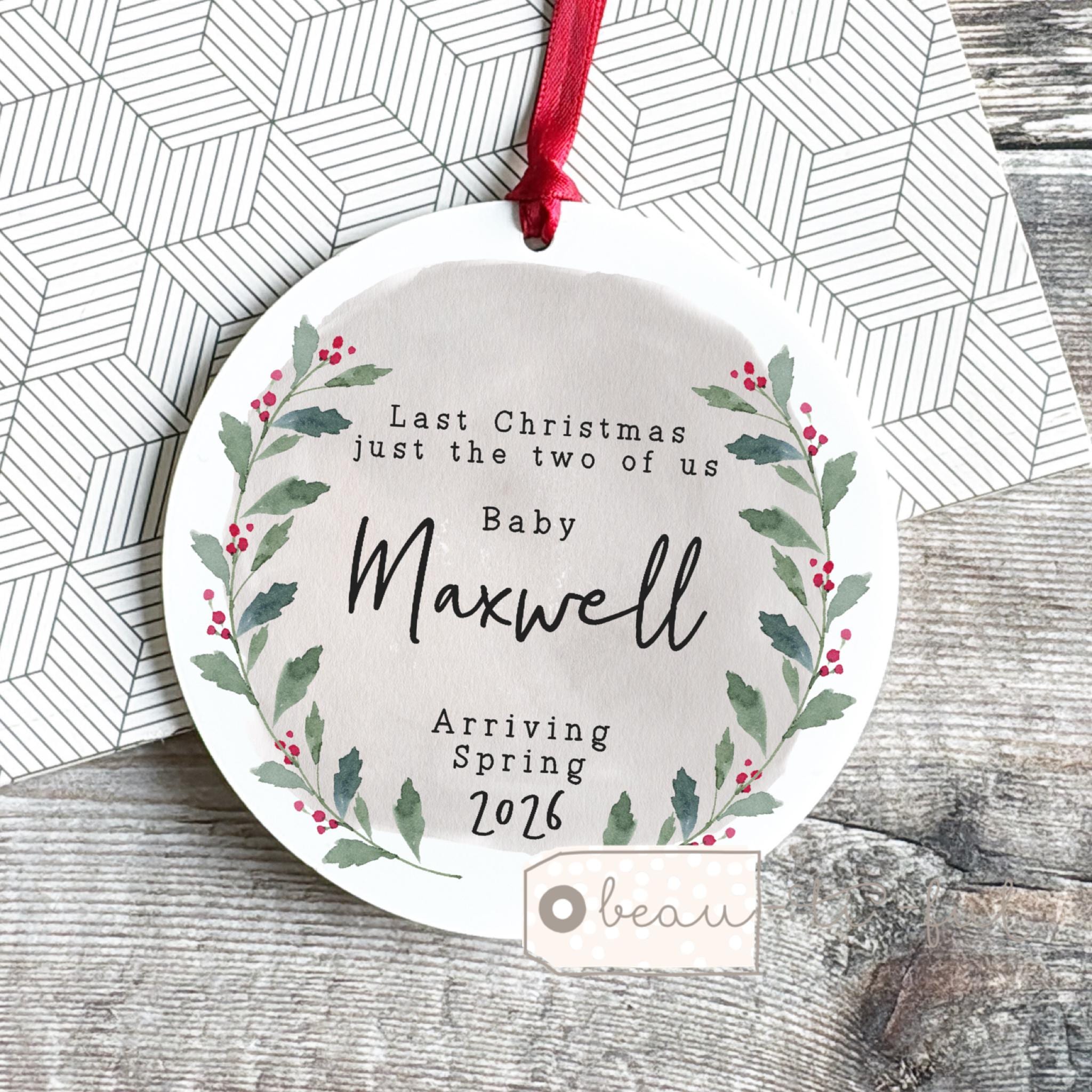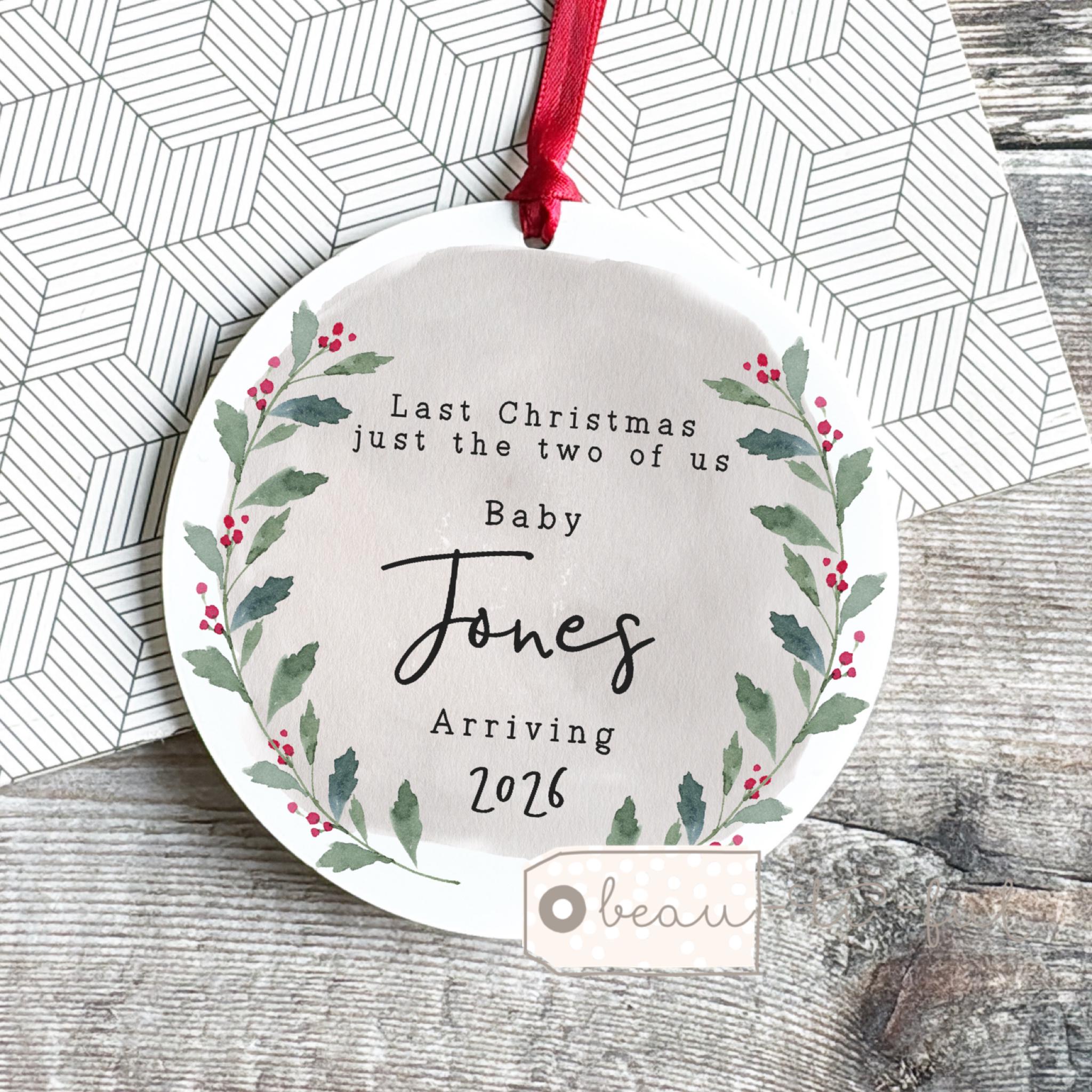 Personalised Last Christmas Just the two of us Pregnancy Pregnant Bump New Baby Boy Girl bauble Round Ornament Keepsake announcement