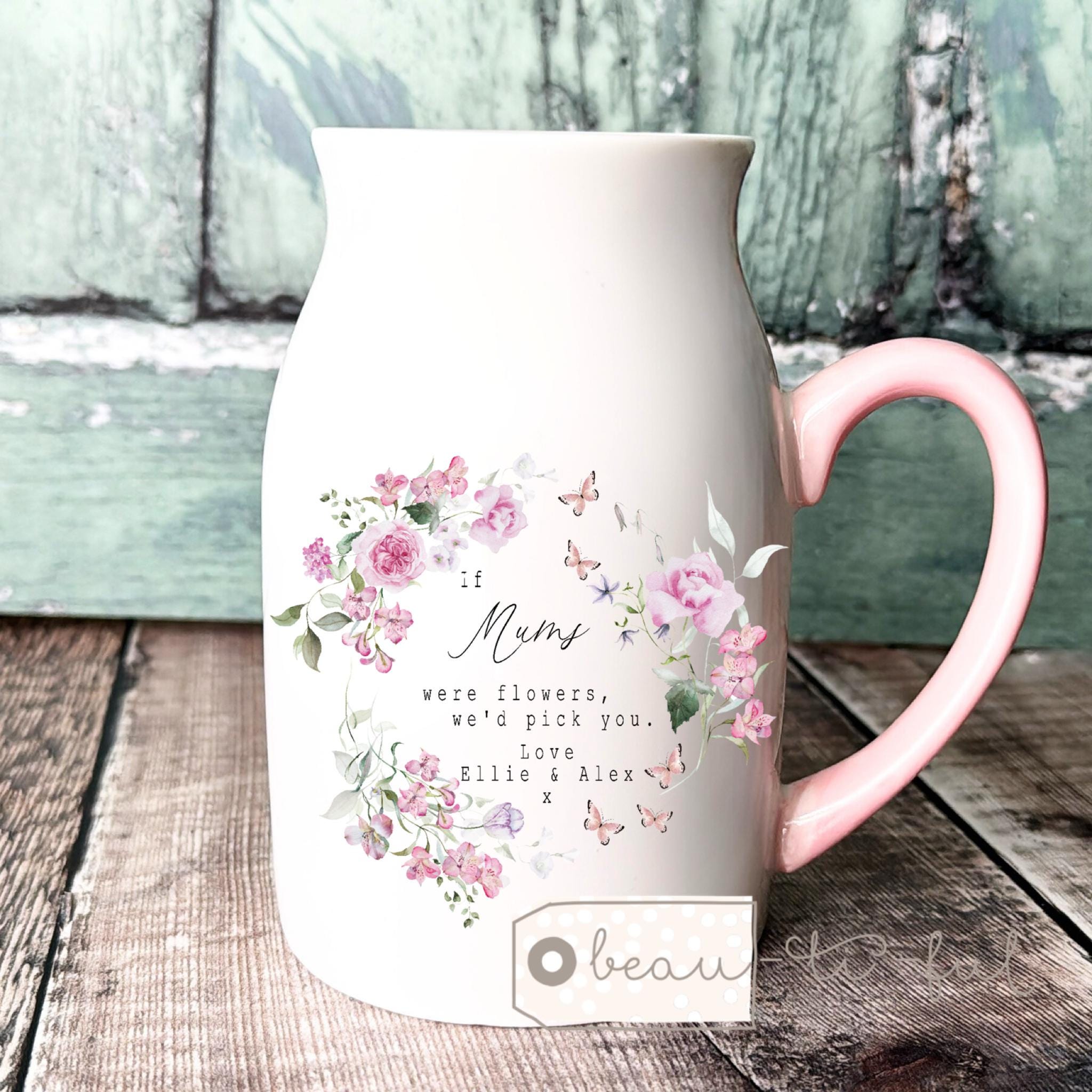 Pink handle 450ml mug/jug/vase size 12.5 cm high x 8cm wide