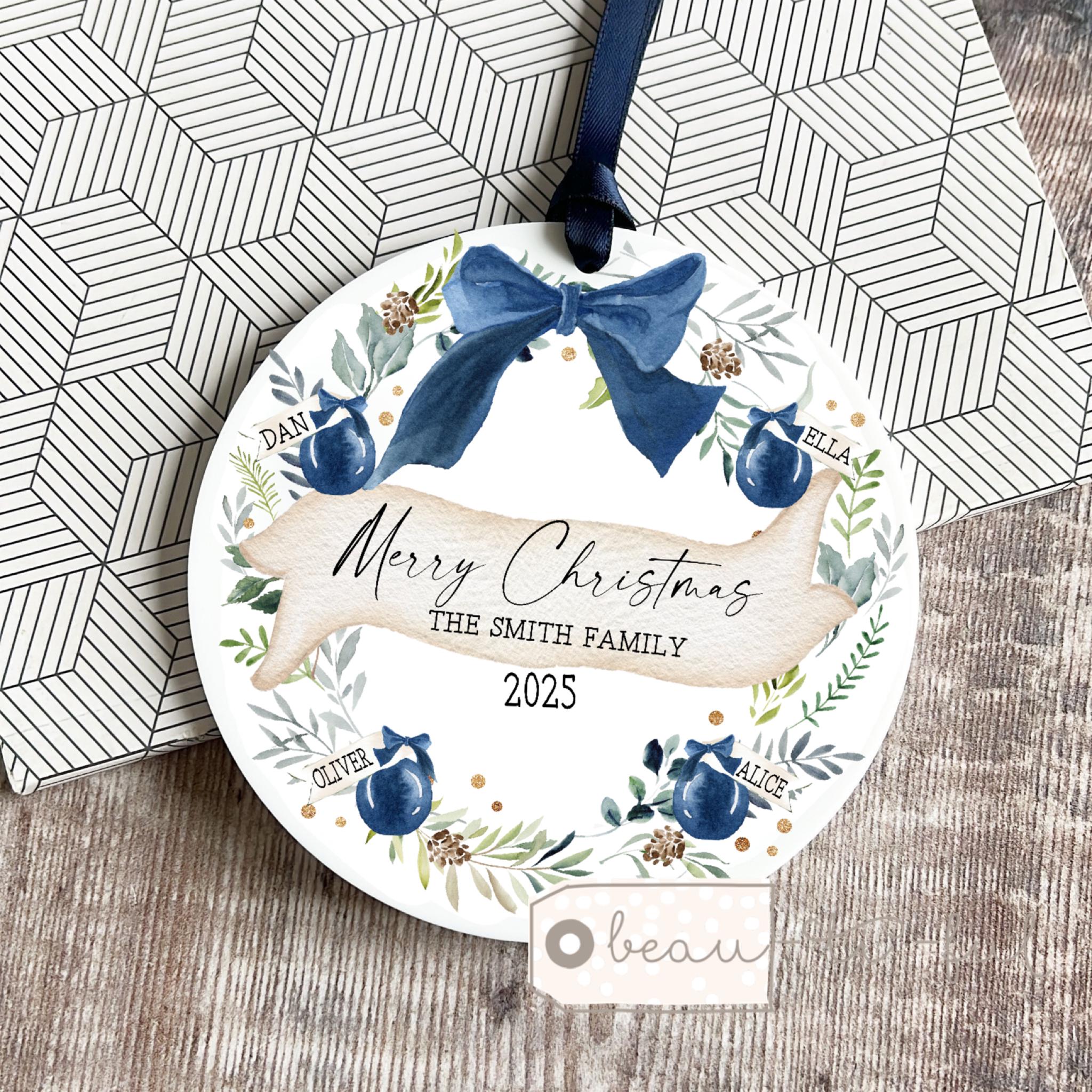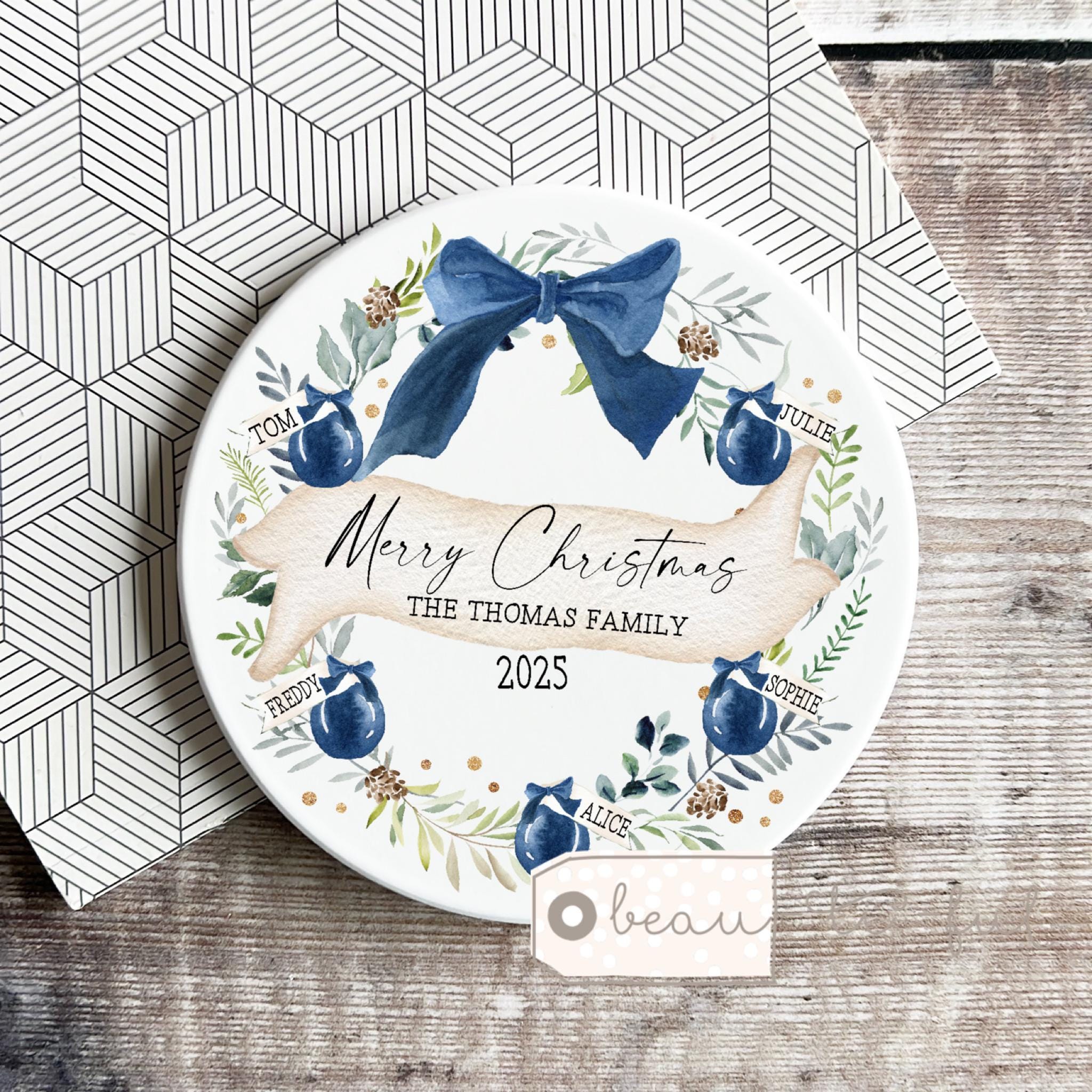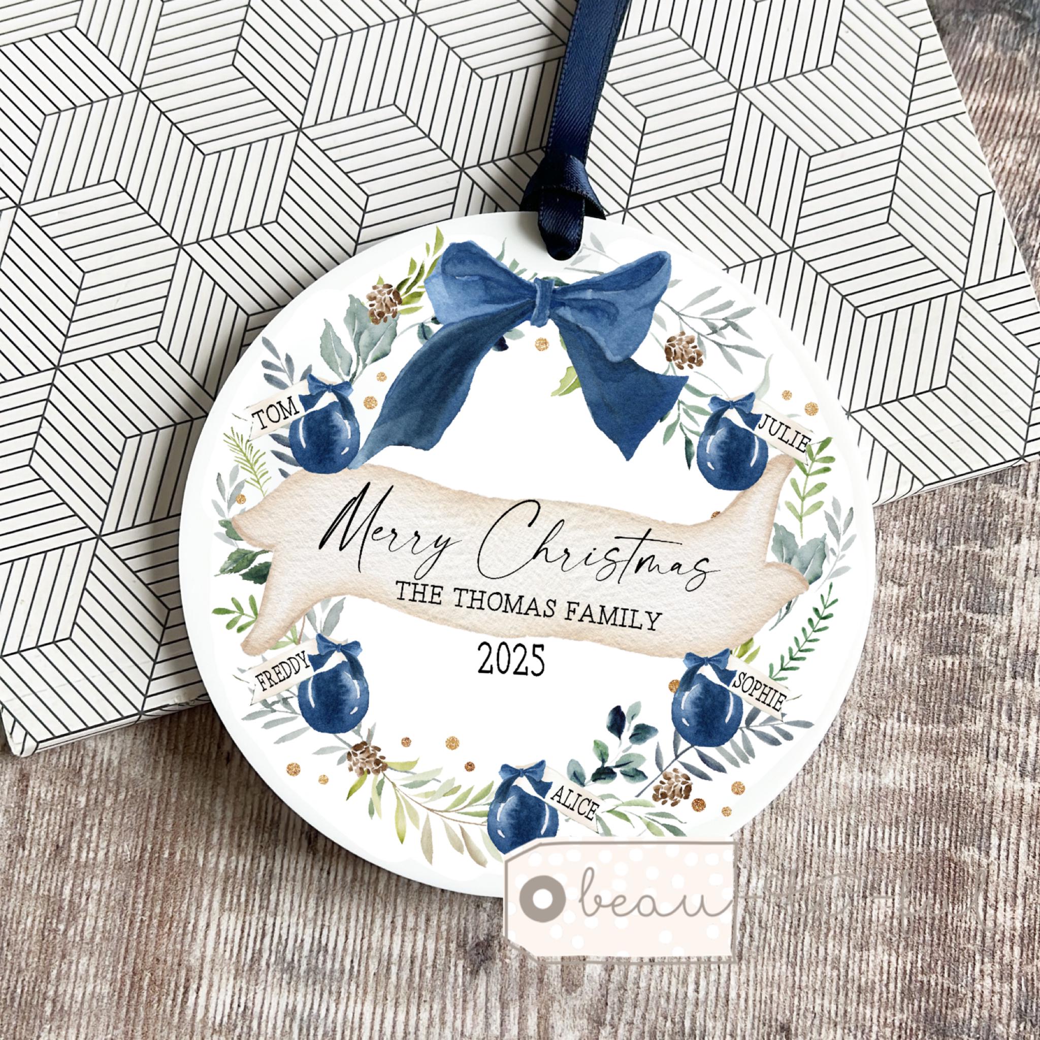 A lovely acrylic or ceramic keepsake ornament. Hung with Ribbon. Ribbon may vary.