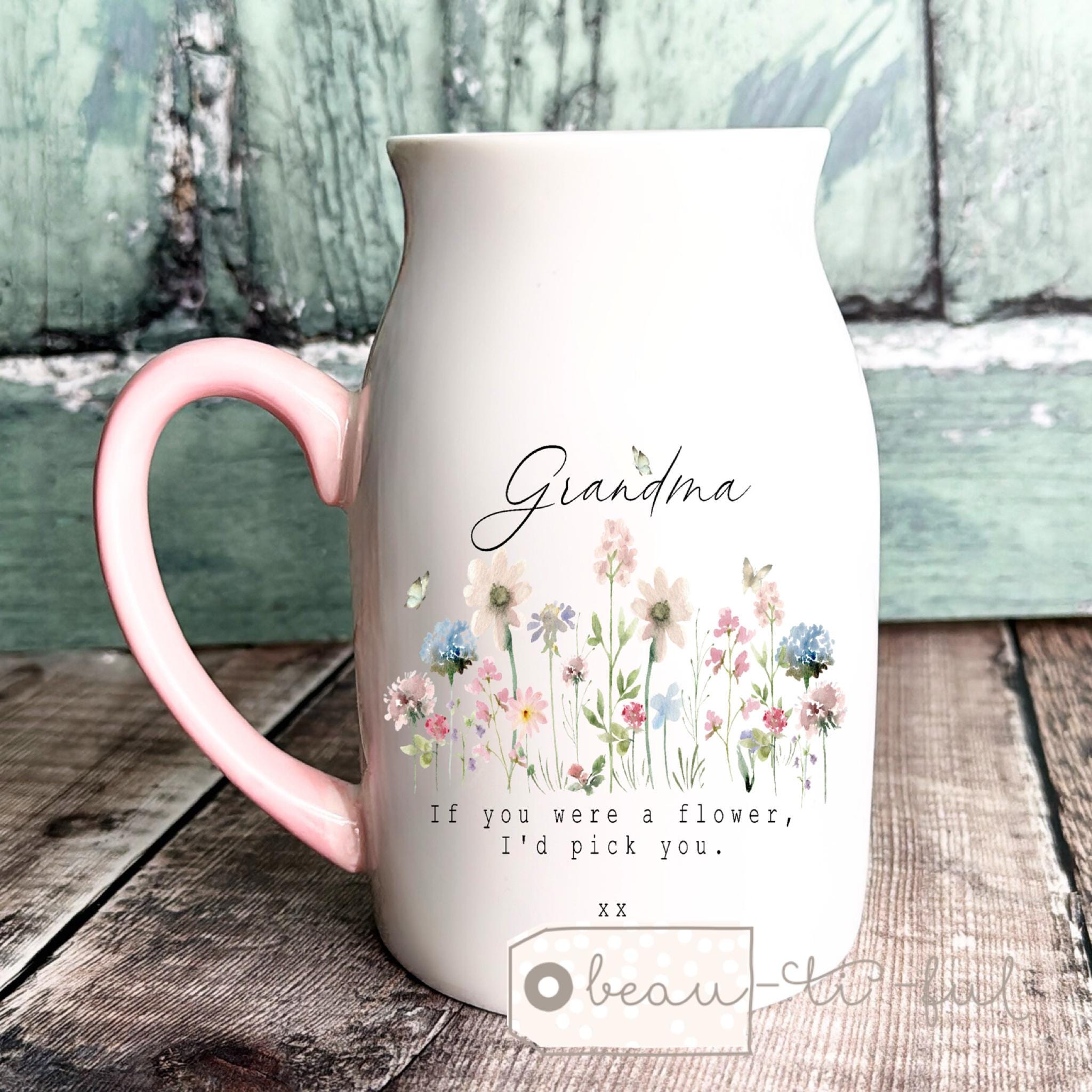 Pink handle 450ml mug/jug/vase size 12.5 cm high x 8cm wide