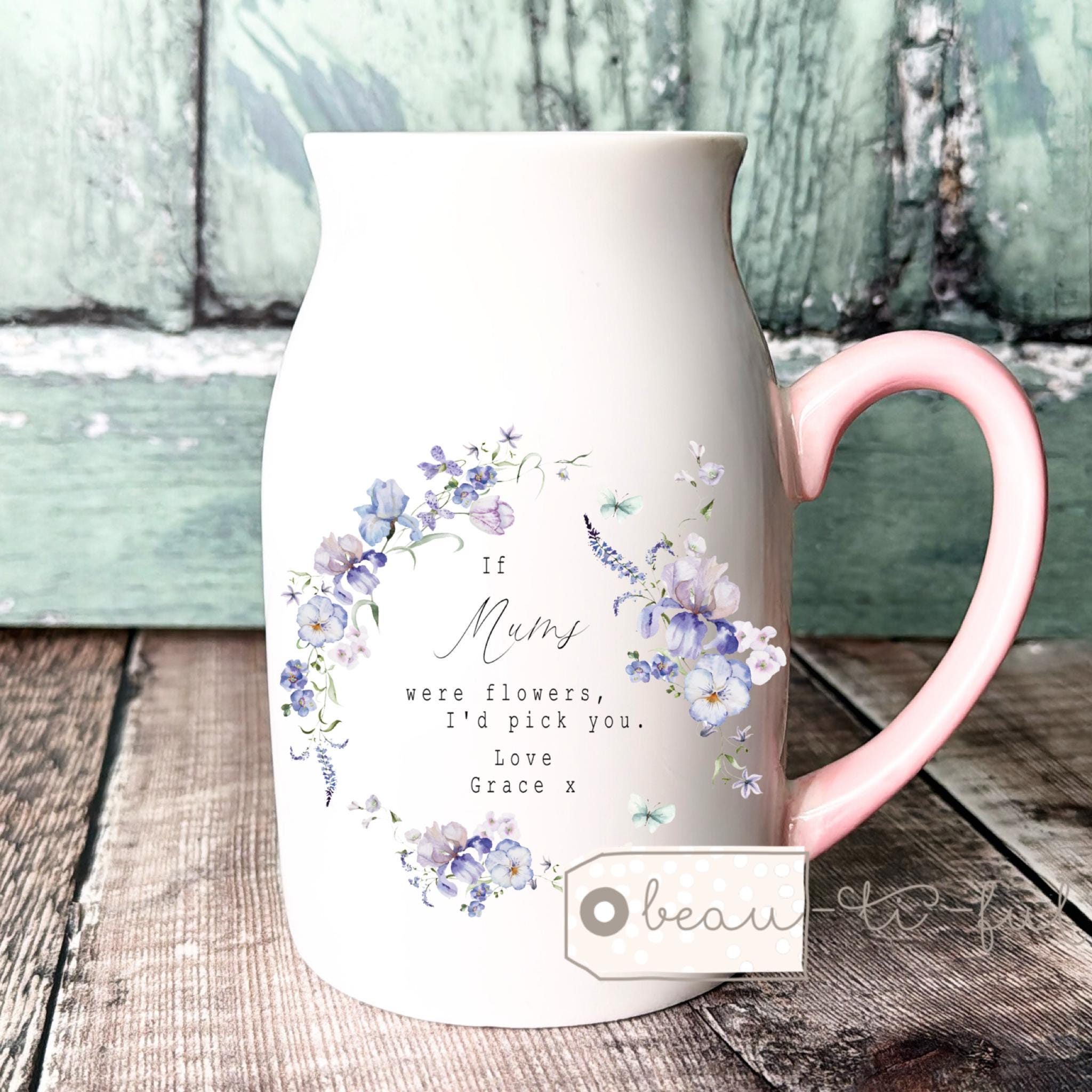 Pink handle 450ml mug/jug/vase size 12.5 cm high x 8cm wide