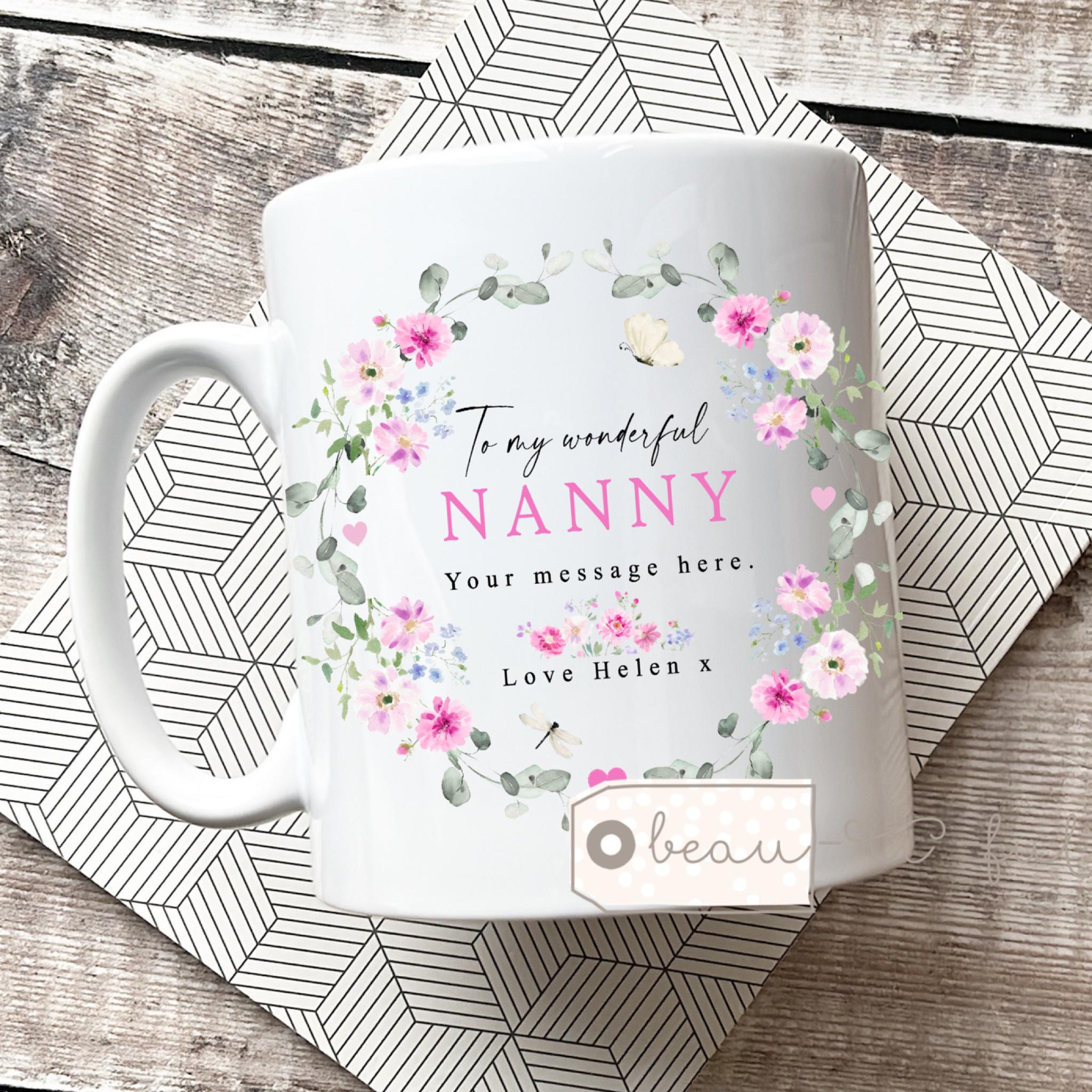 Personalised Mother’s Day gift Mum gift Nanna Nan Gran Grandma Nanny Ceramic Mug Tea mug coffee Mug Gift mug Birthday gift Easter Flowers