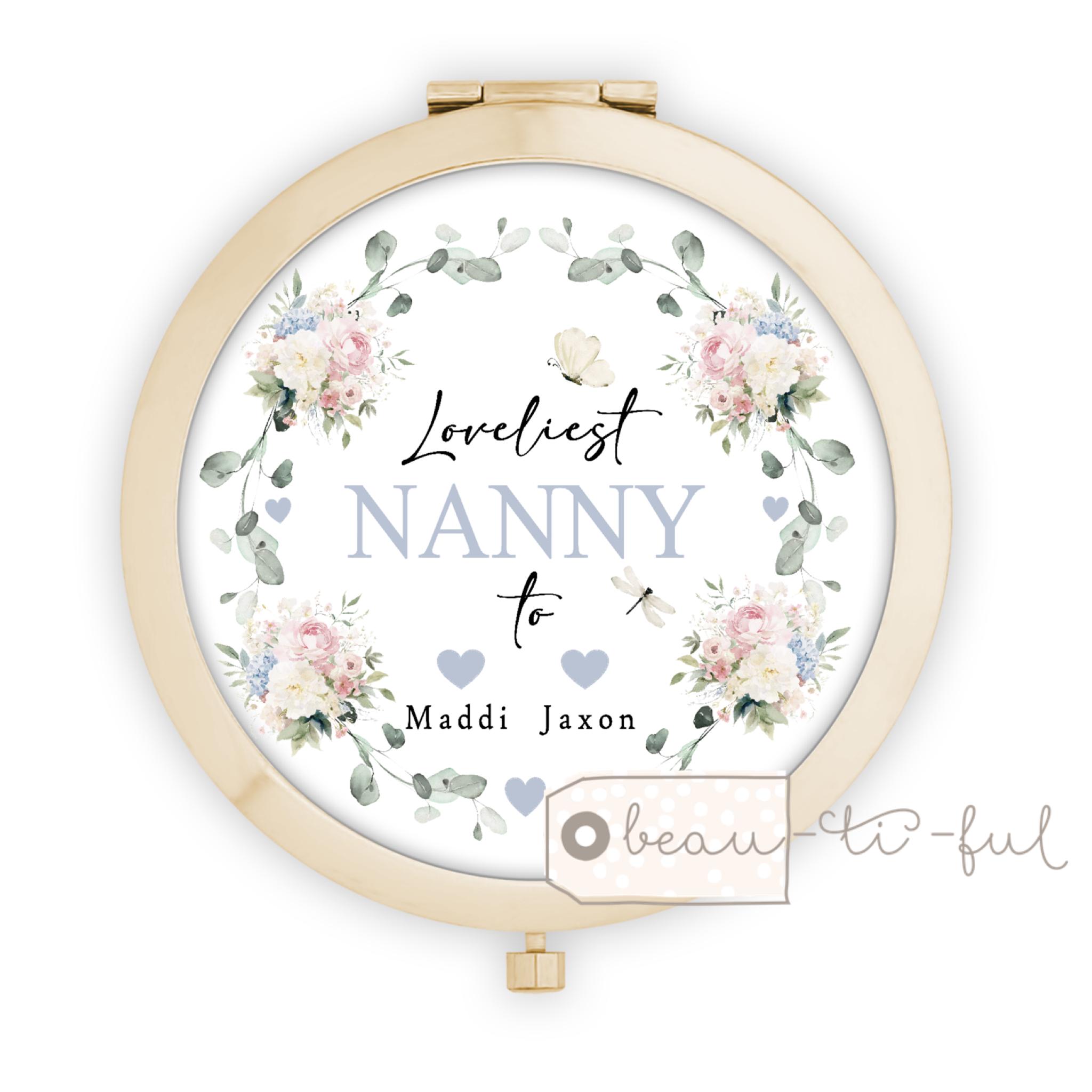 Personalised Mum Auntie Grandma Nanna Gift wreath compact mirror makeup mirror Keepsake Mother’s Day Birthday Thank you