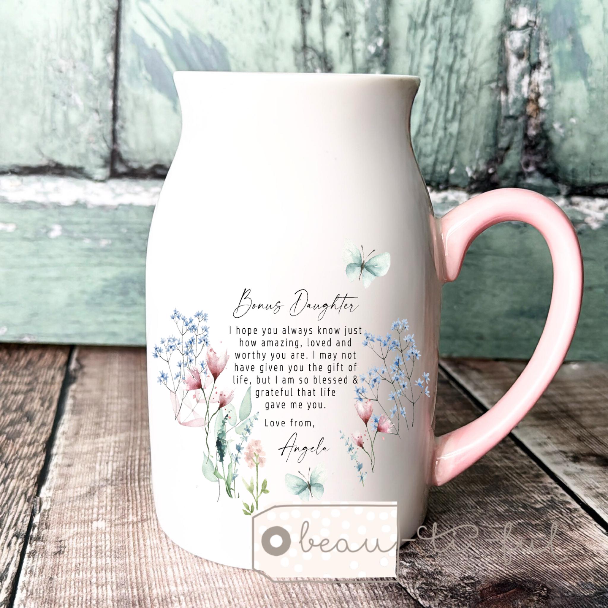 Pink handle 450ml mug/jug/vase 8cm x 12.5cm