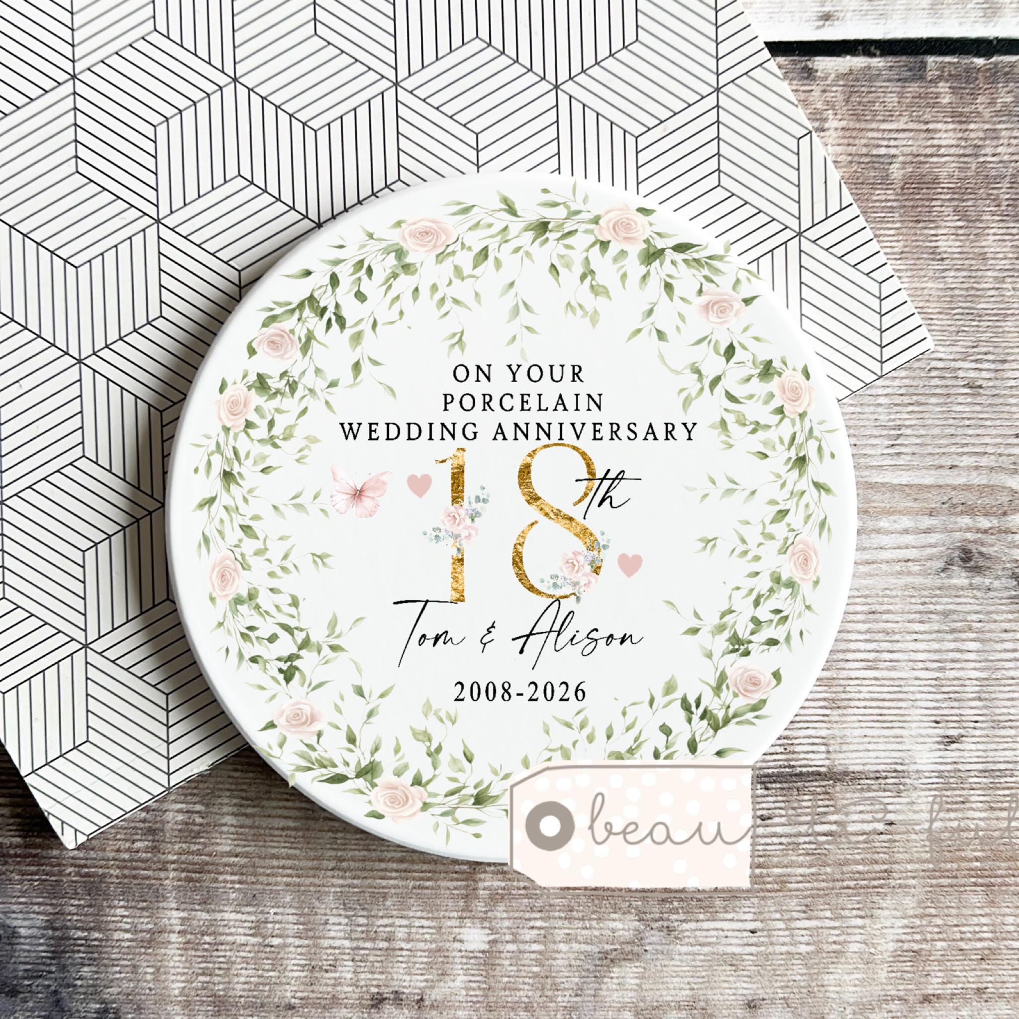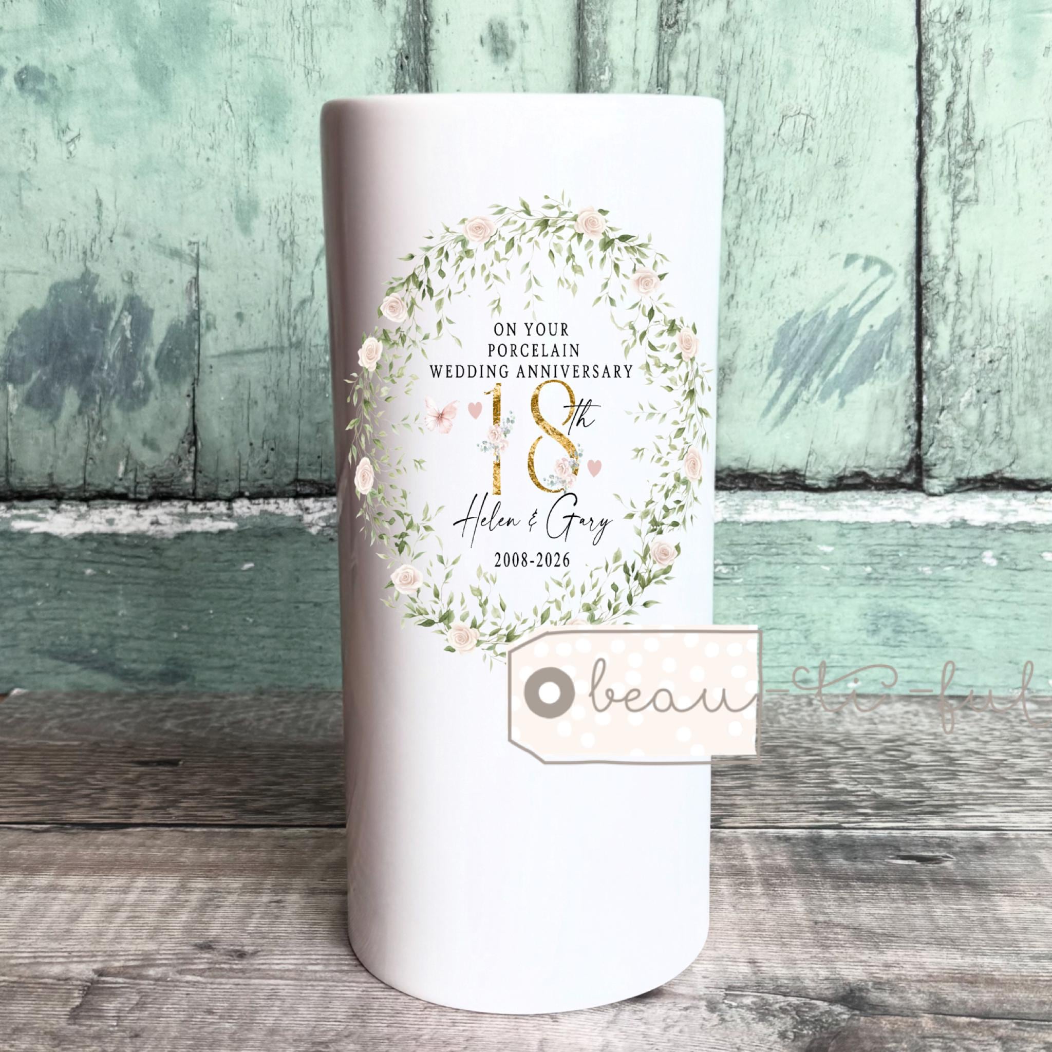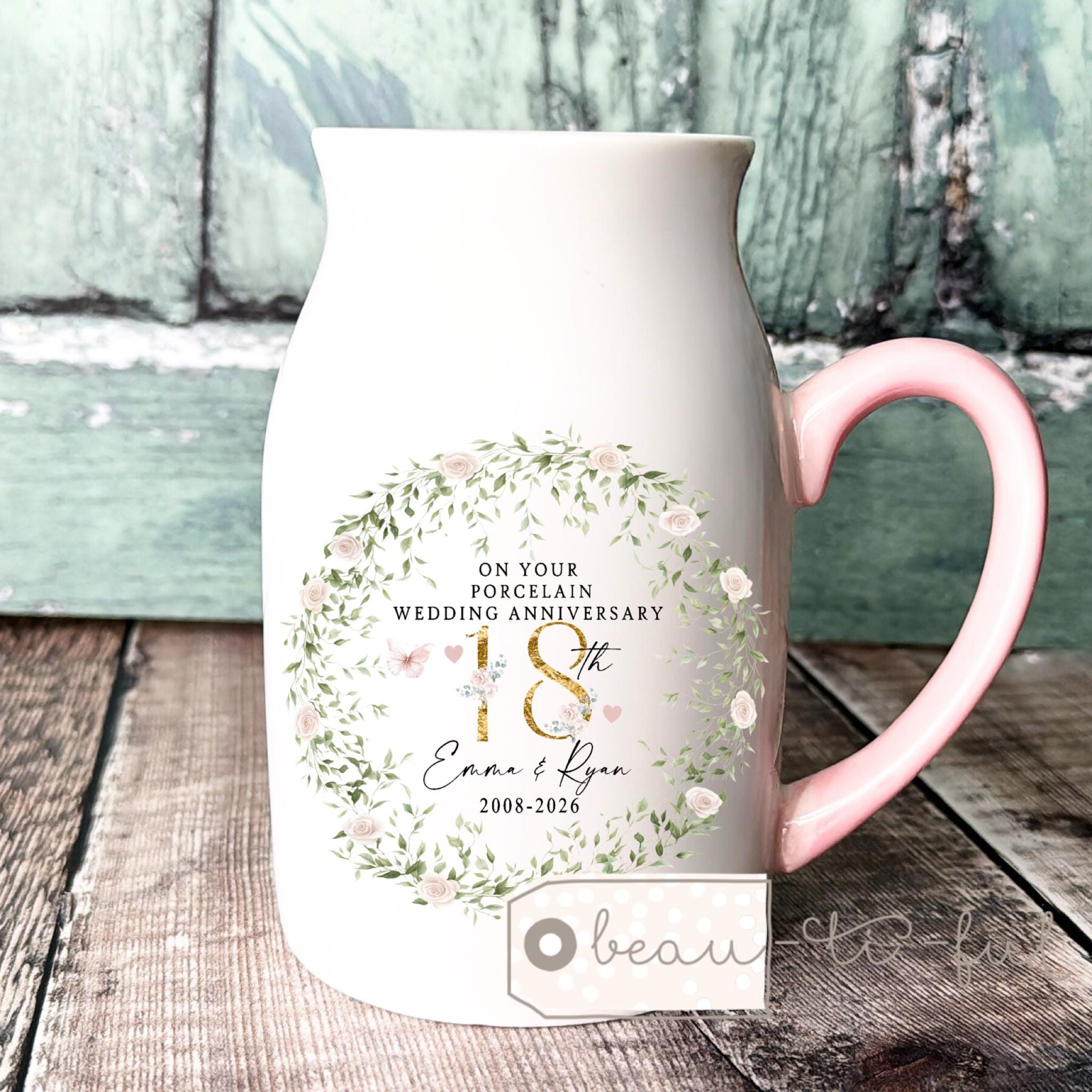 Personalised Porcelain Wedding Anniversary gift, 18th anniversary, Ruby Silver China, gift for couple, Floral Ceramic Small Vase Jug Mug