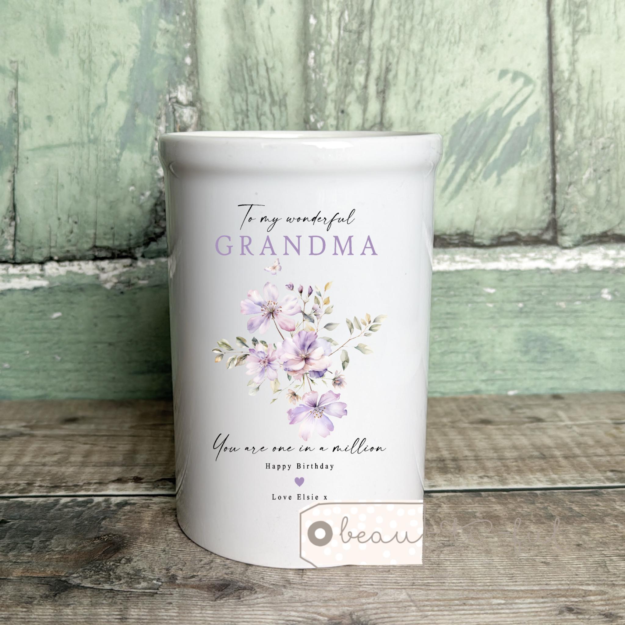 Grandma Flower Jug, Mum Grandma Vase, Nana Gifts Ceramic, Nana Jug Vase, Nanny Mothers Day, Ceramic Vase, Ceramic Flower vase, Nan Vase, Pottery Gifts for New Nana, Personalised Jug Gran,