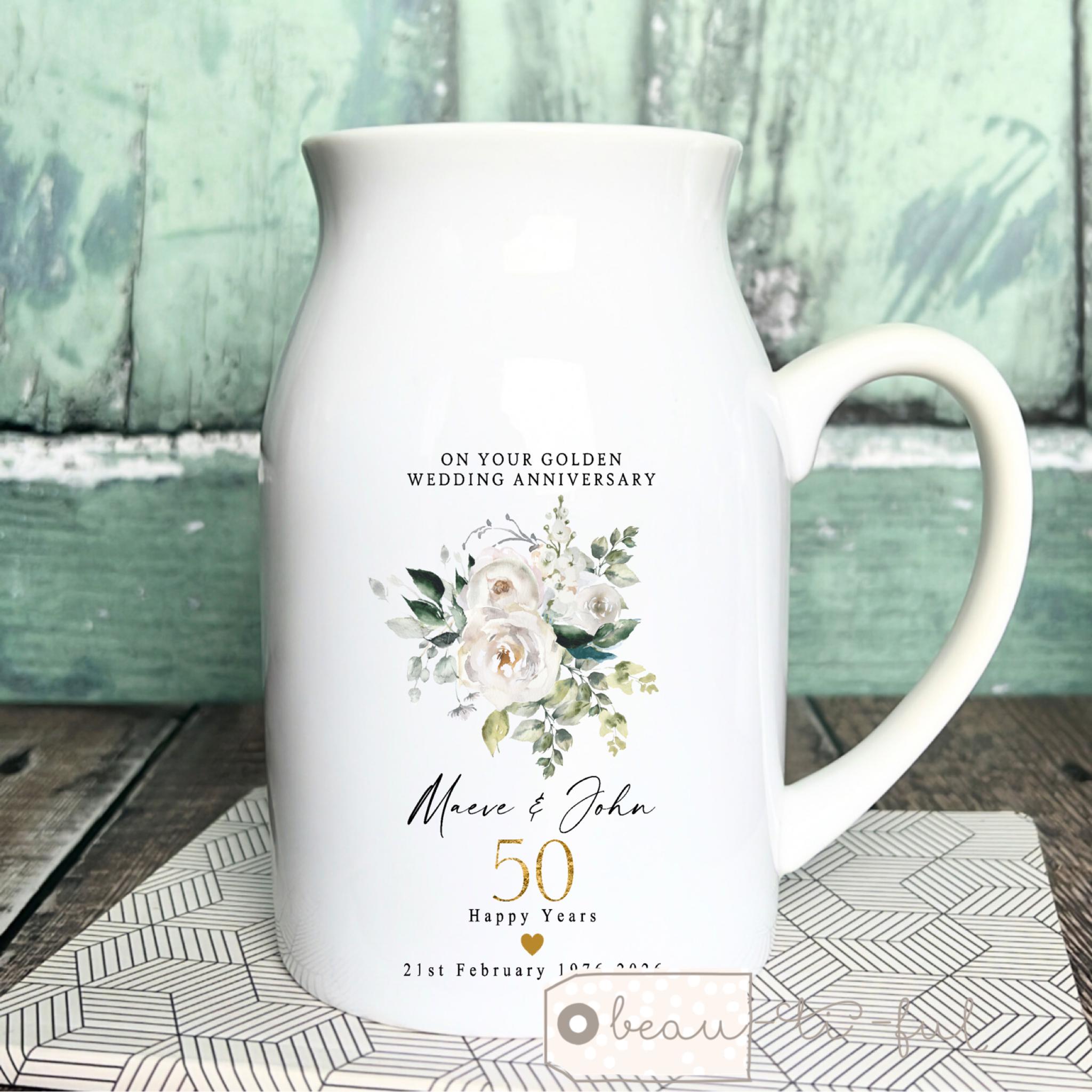 Personalised Golden Anniversary Ceramic Vase gift 1st 25 50 40 50 60 Silver Golden Diamond Wedding Anniversary gift Floral