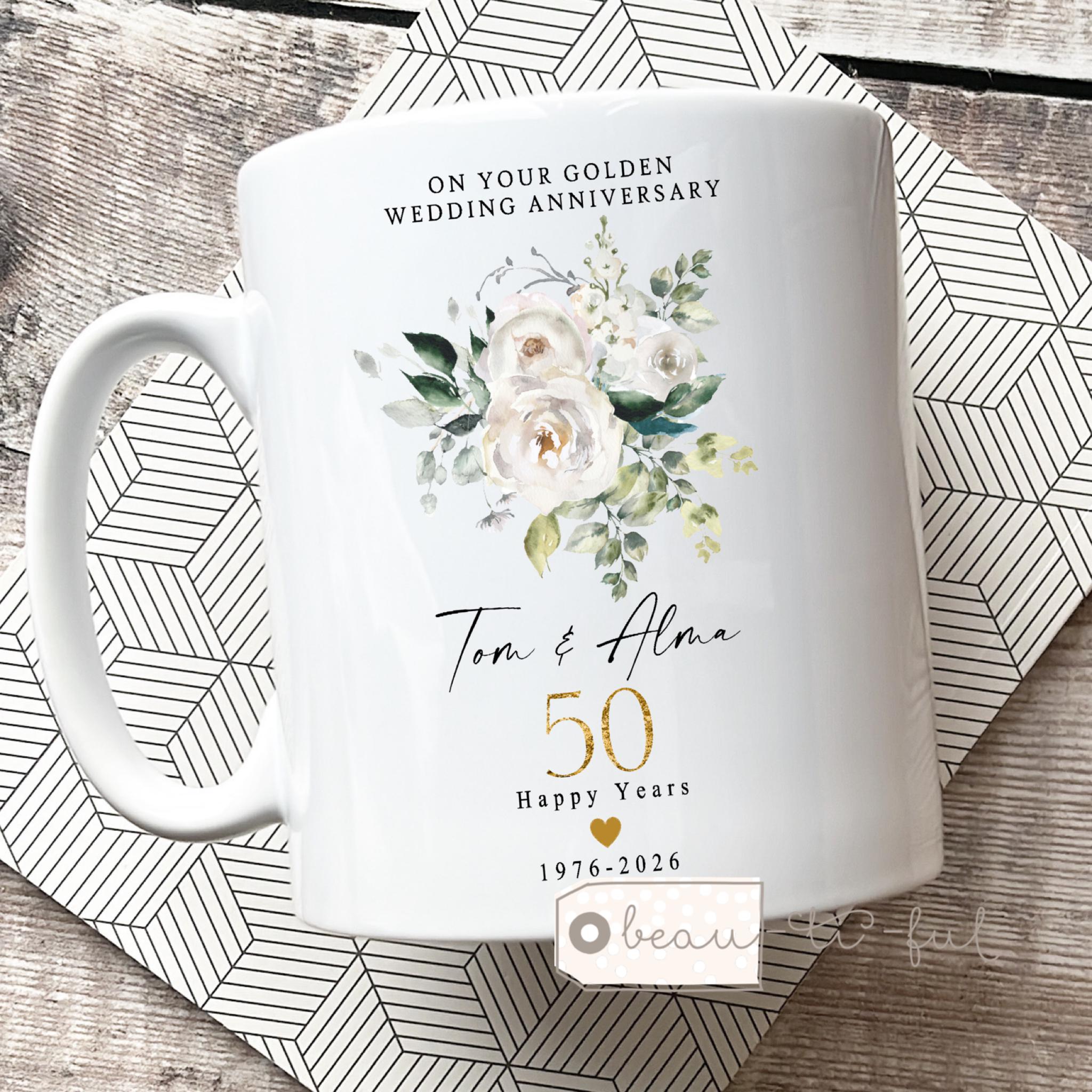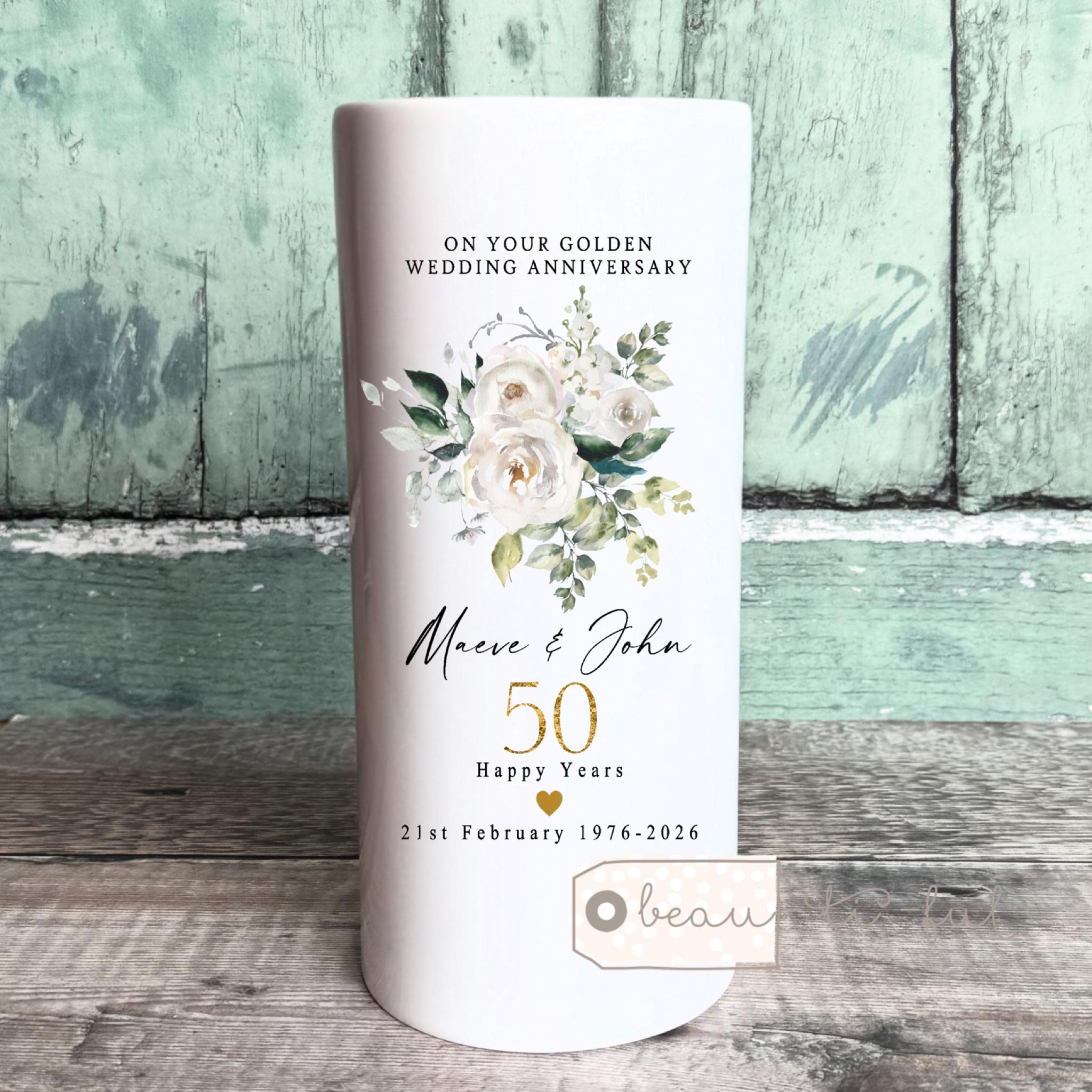 Personalised Golden Anniversary Ceramic Small Vase Mug Jug gift 1st 25 50 40 50 60 Silver Ruby Diamond Wedding Anniversary gift Floral