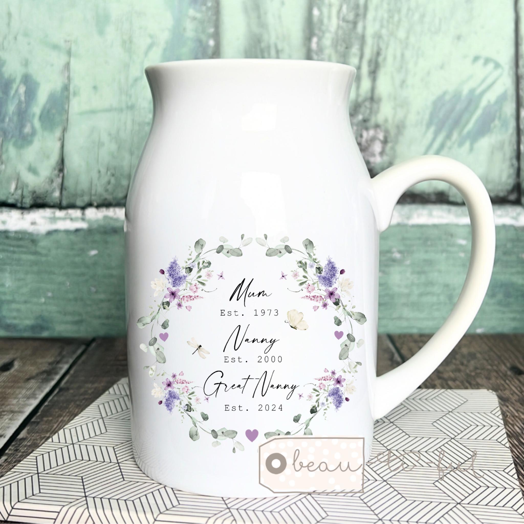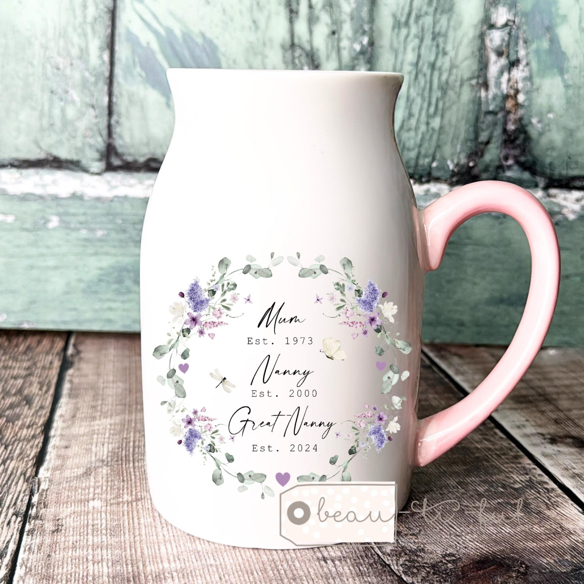 Pink handle jug/mug/vase 450ml 8cm x 12cm