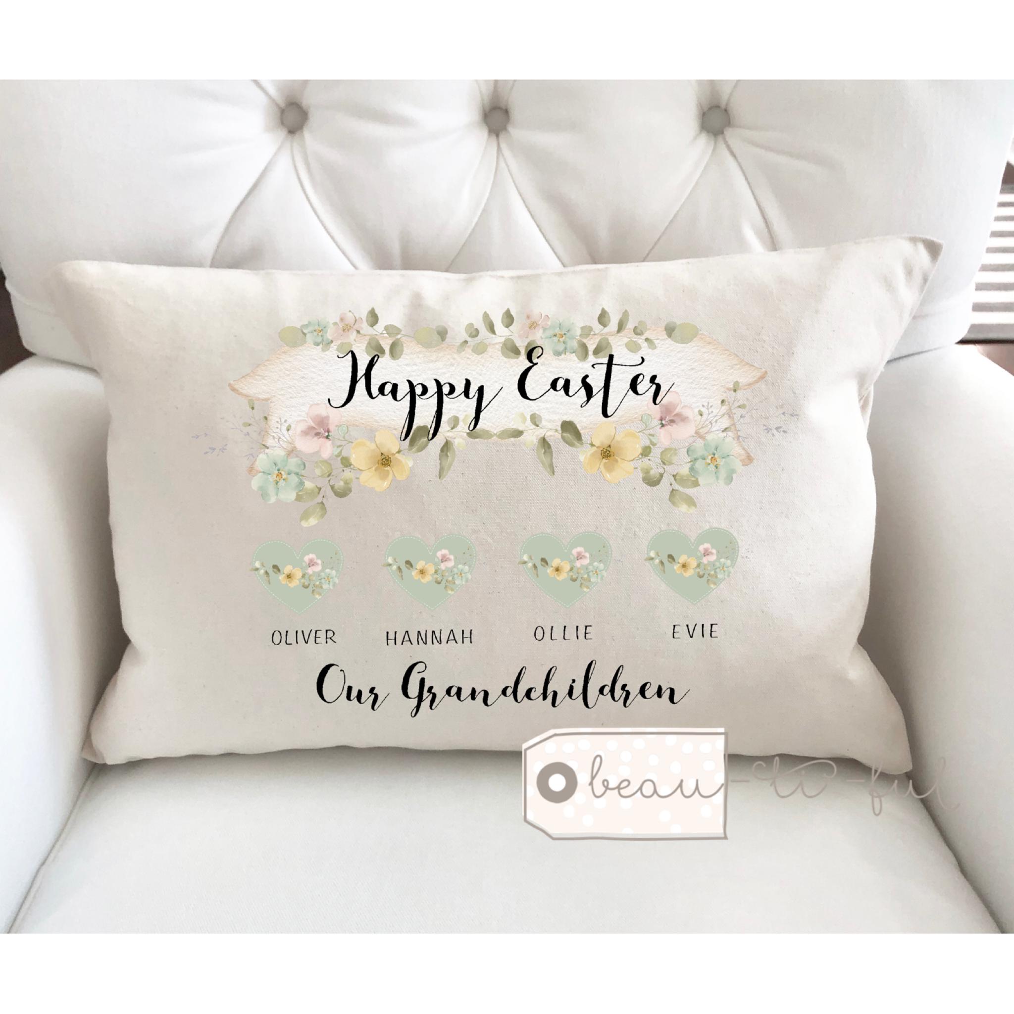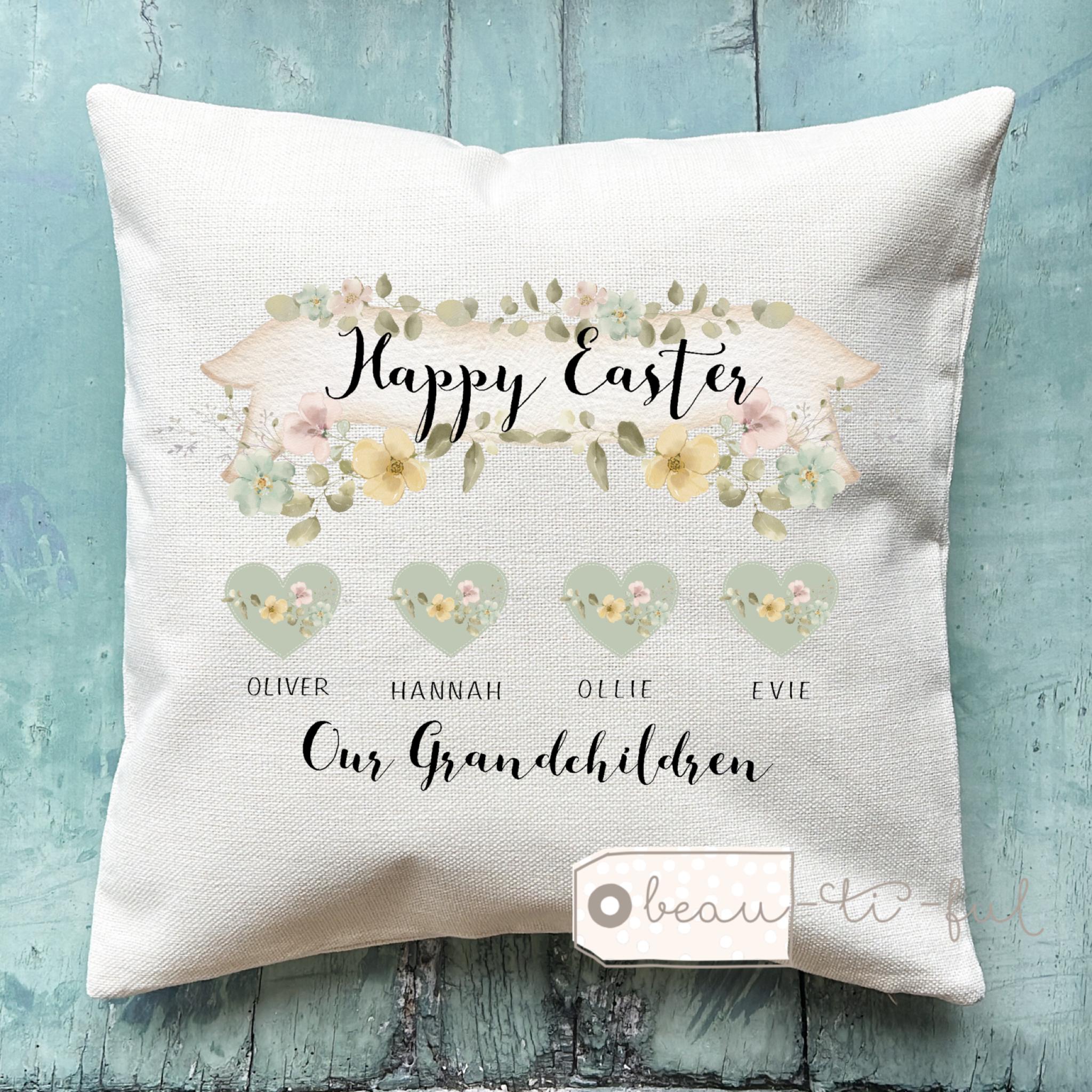 Greenery design cushion cover. Please add names, text for top line and bottom line in personalisation box.
