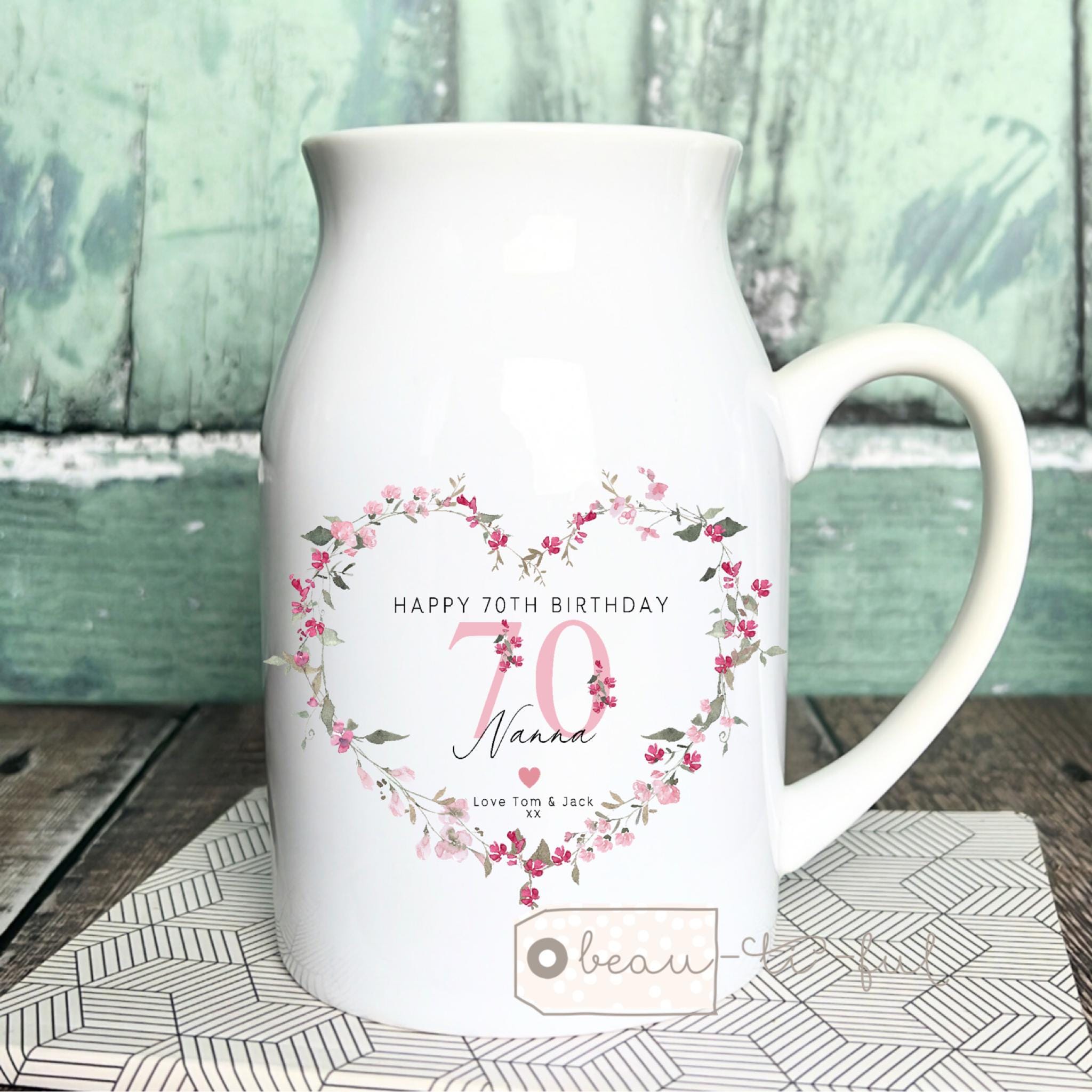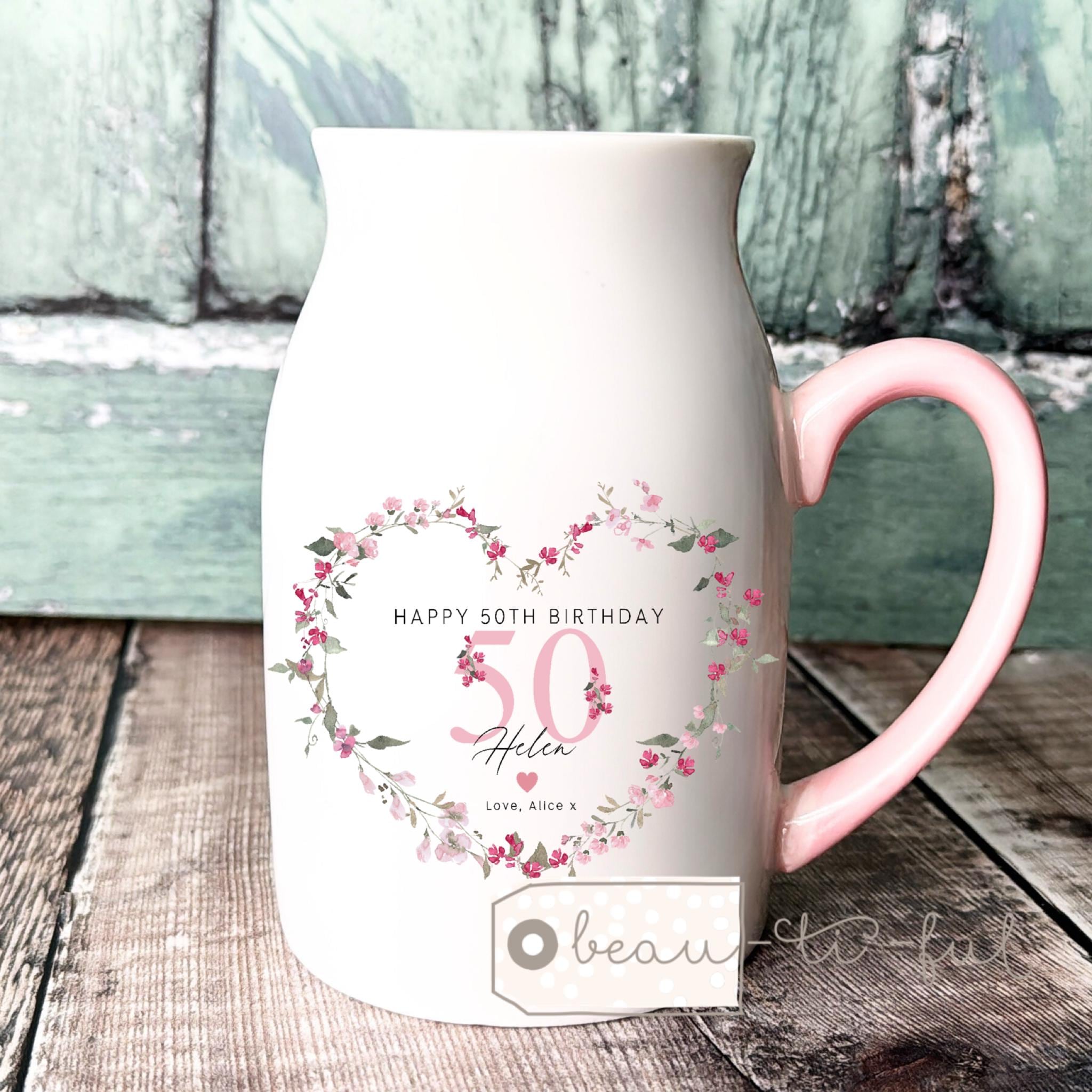 Pink handled mug/jug/vase 450ml 8cm wide at widest point x 12.5cm tall
