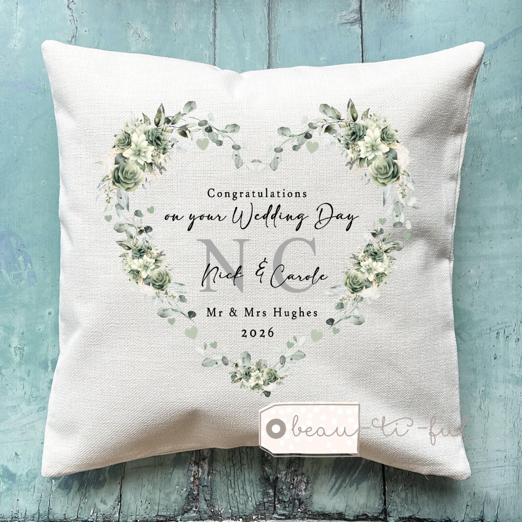 Personalised Wedding Cushion, Mr Mrs Gift, Greenery Design Newlywed Present, Bride Groom gift, New couple gift, Just Married