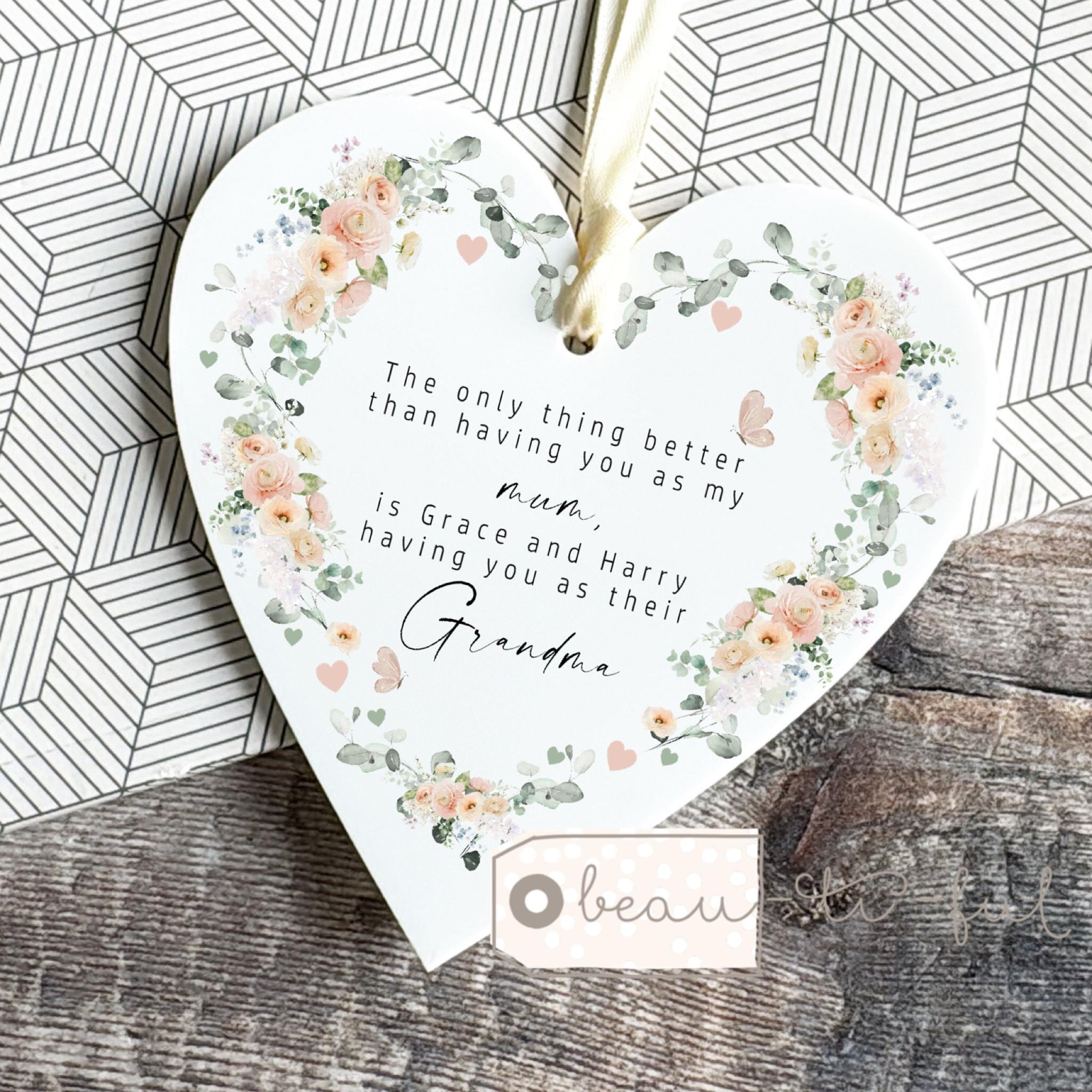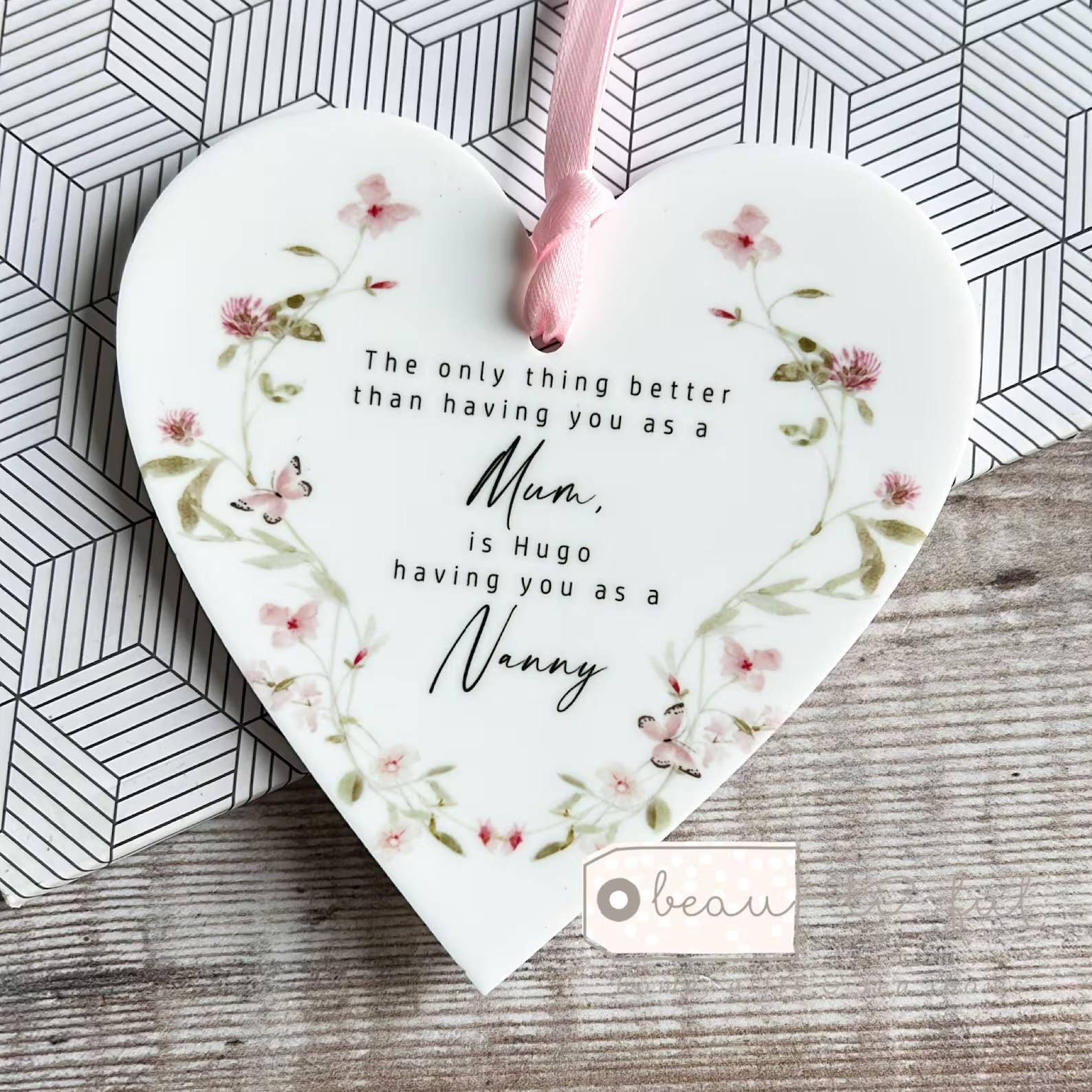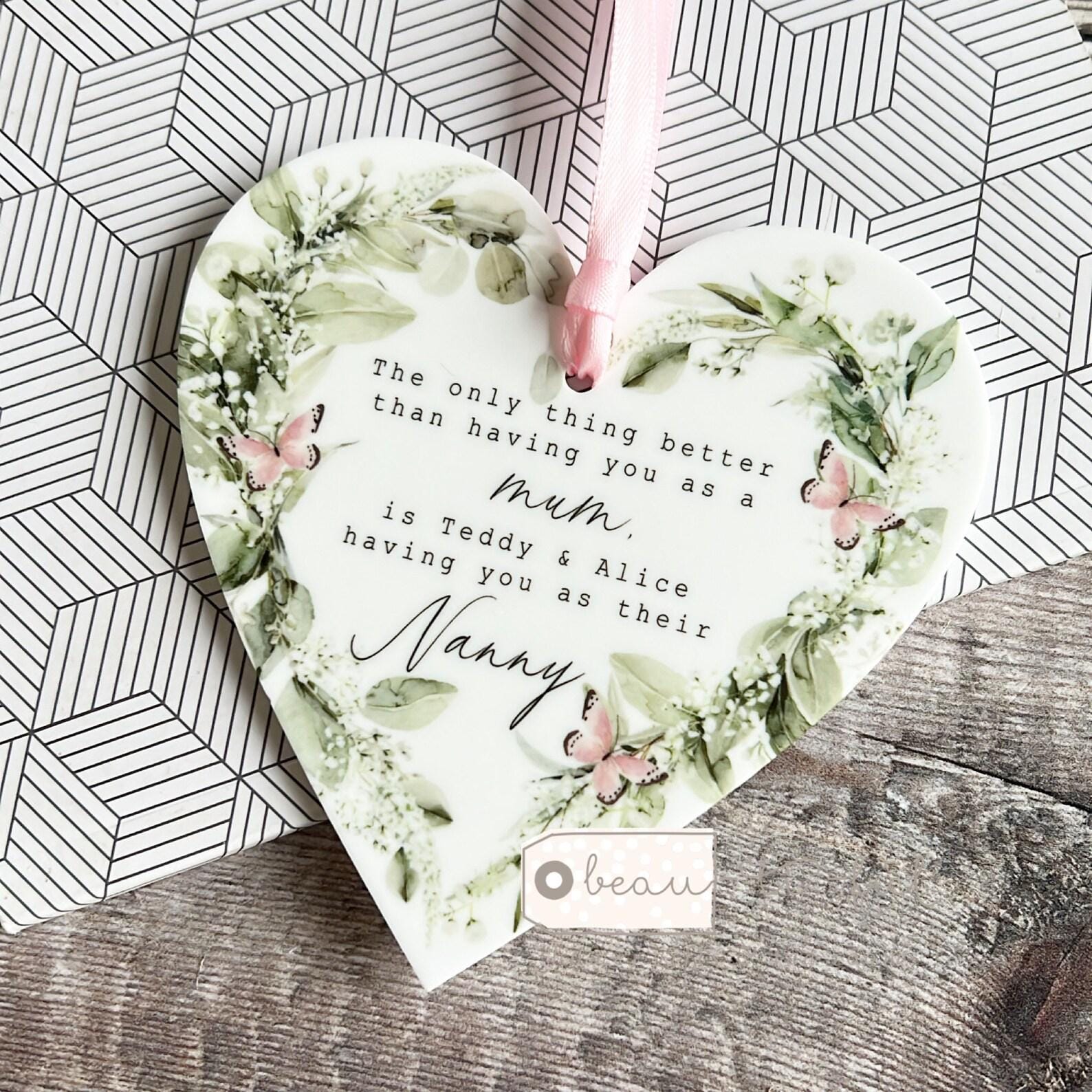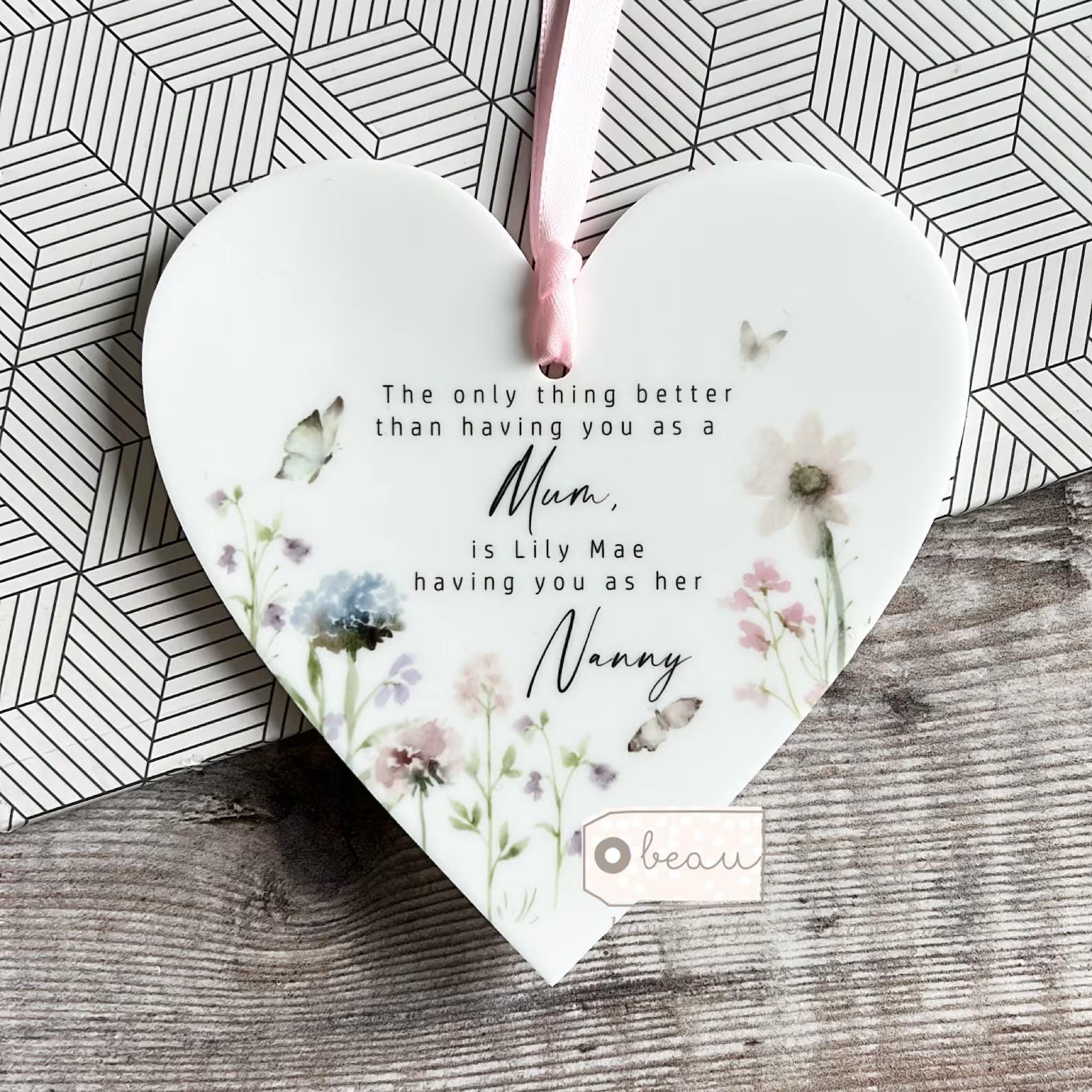 Personalised Mum Mom Nanny Mother Gift Sentiment The only thing better than having you Pink Wildflower Heart Floral hanging keepsake