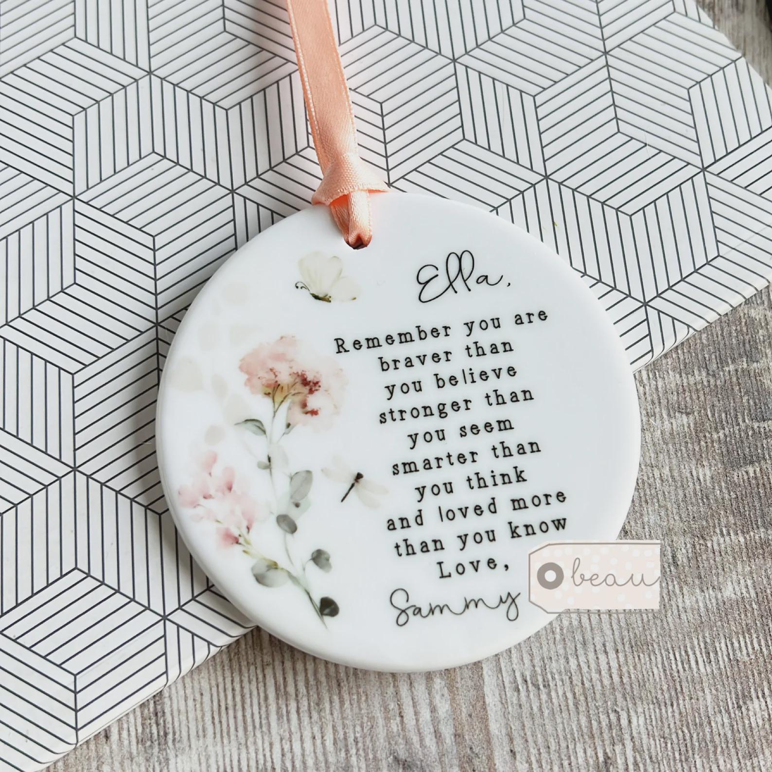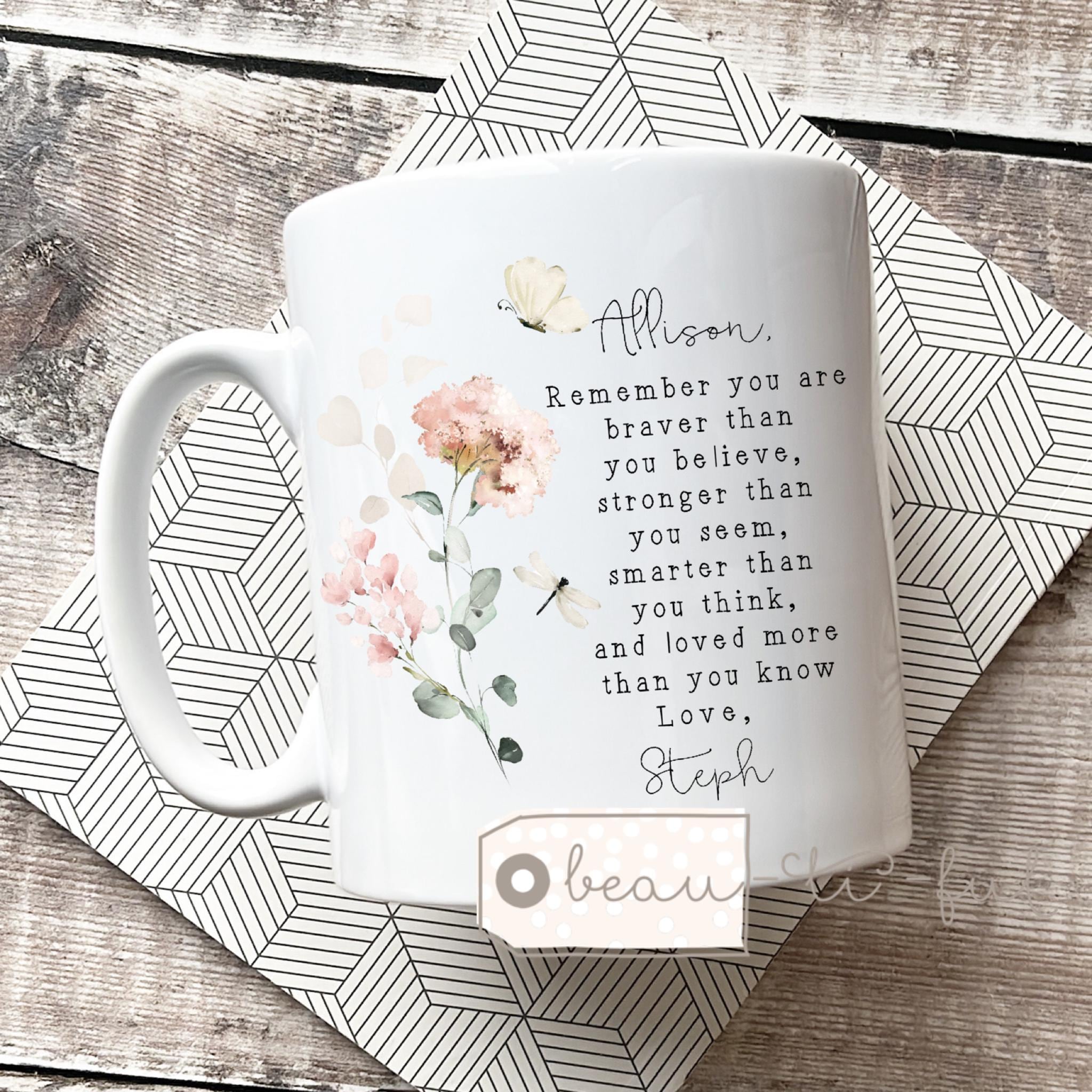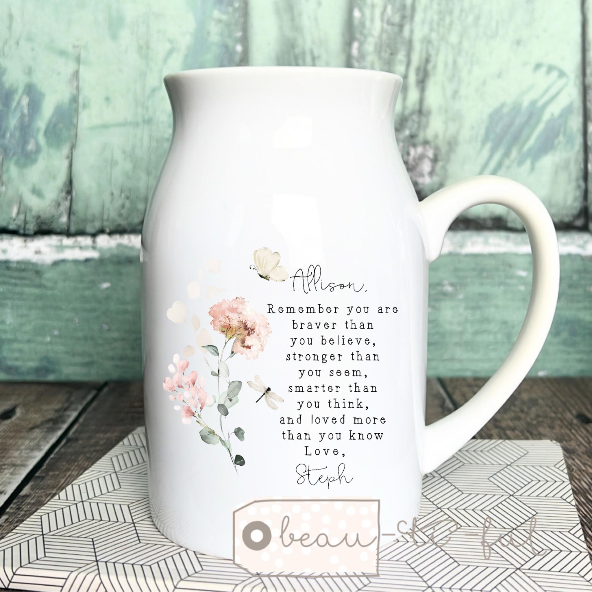 Personalised Friend gift, Remember you are braver Floral Ceramic Small jug vase mug, Friendship Bud vase