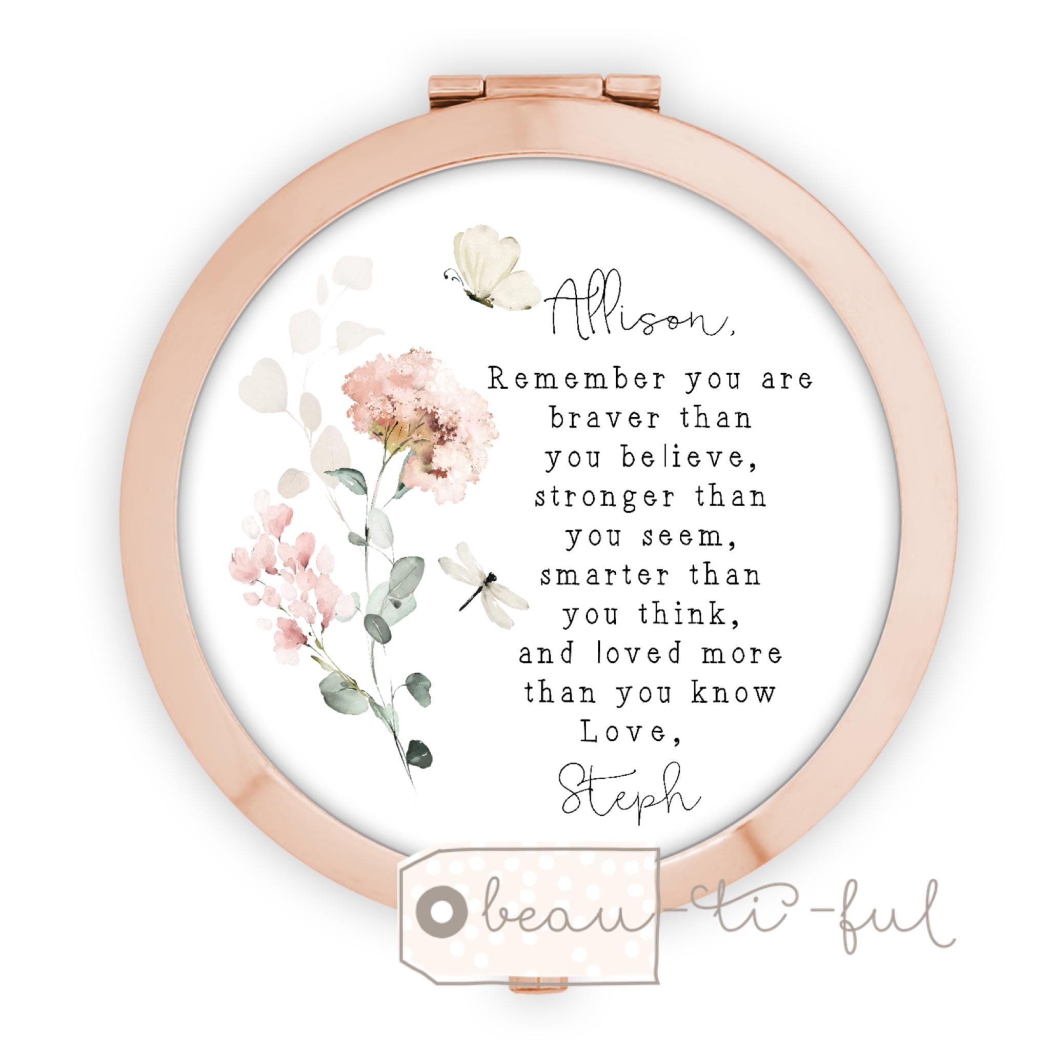A lovely personalised gift. Rose gold, gold or silver coloured compact mirror.