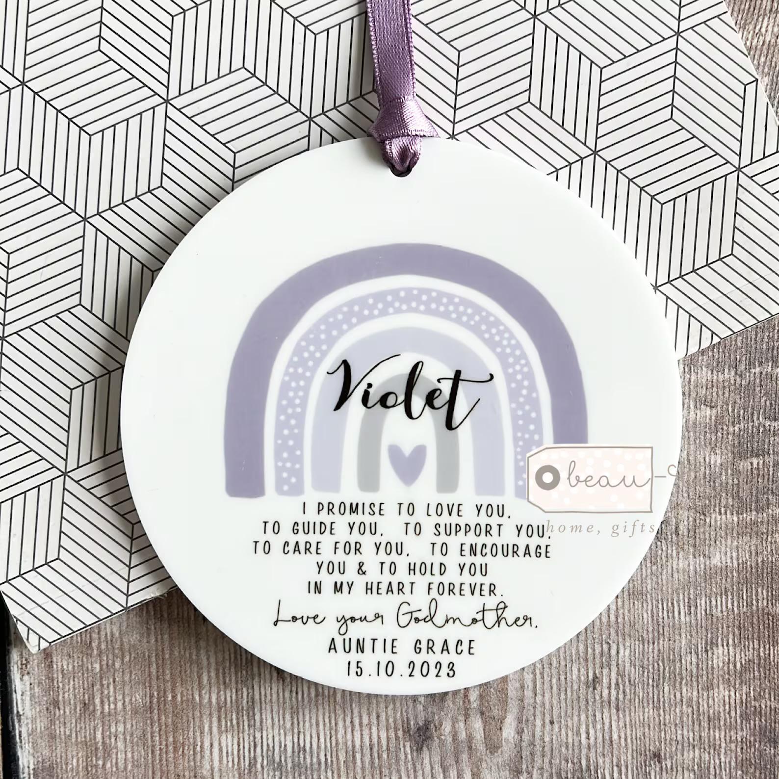 Also available in an acrylic or ceramic ornament here: https://www.etsy.com/uk/listing/1482903043/personalised-promise-to-godchild