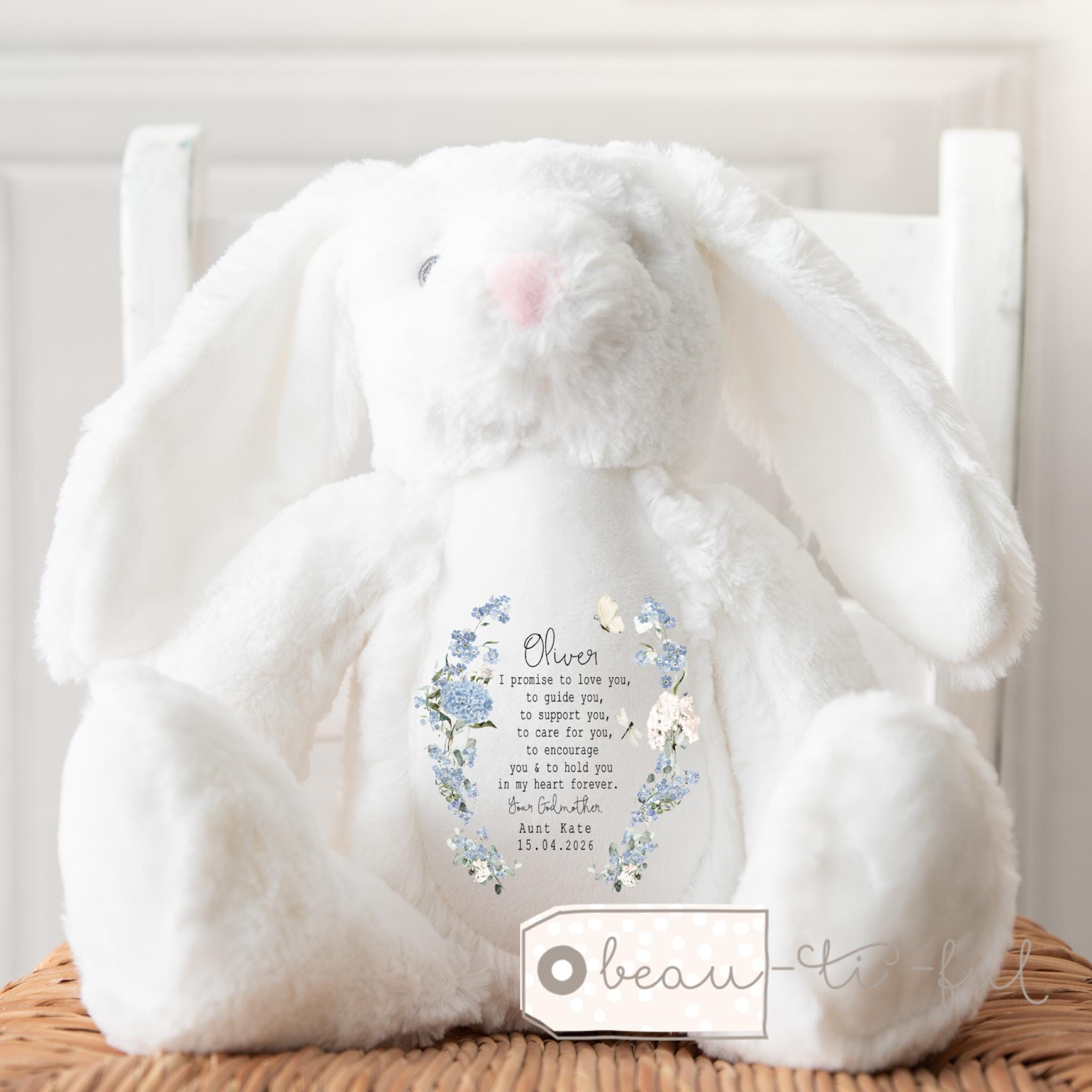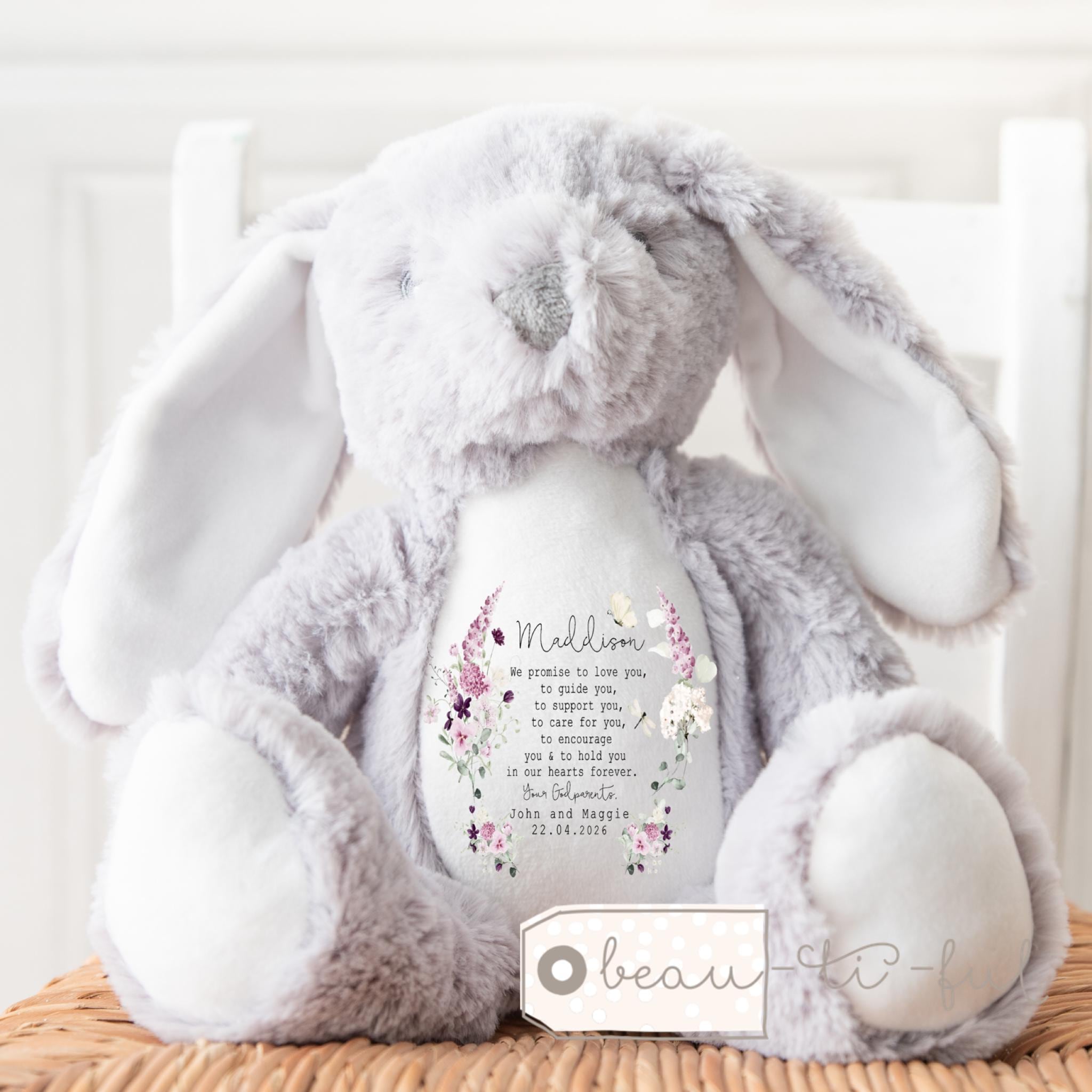 Personalised Christening Gift for Girls, Baptism Gift, Christening Bunny, Christening Gifts, Christening Keepsake, Girls and Boys Teddy, Bunny, Gift for nephew, Gift for niece, Christening toys, Christening gift for boys, boys christening keepsake